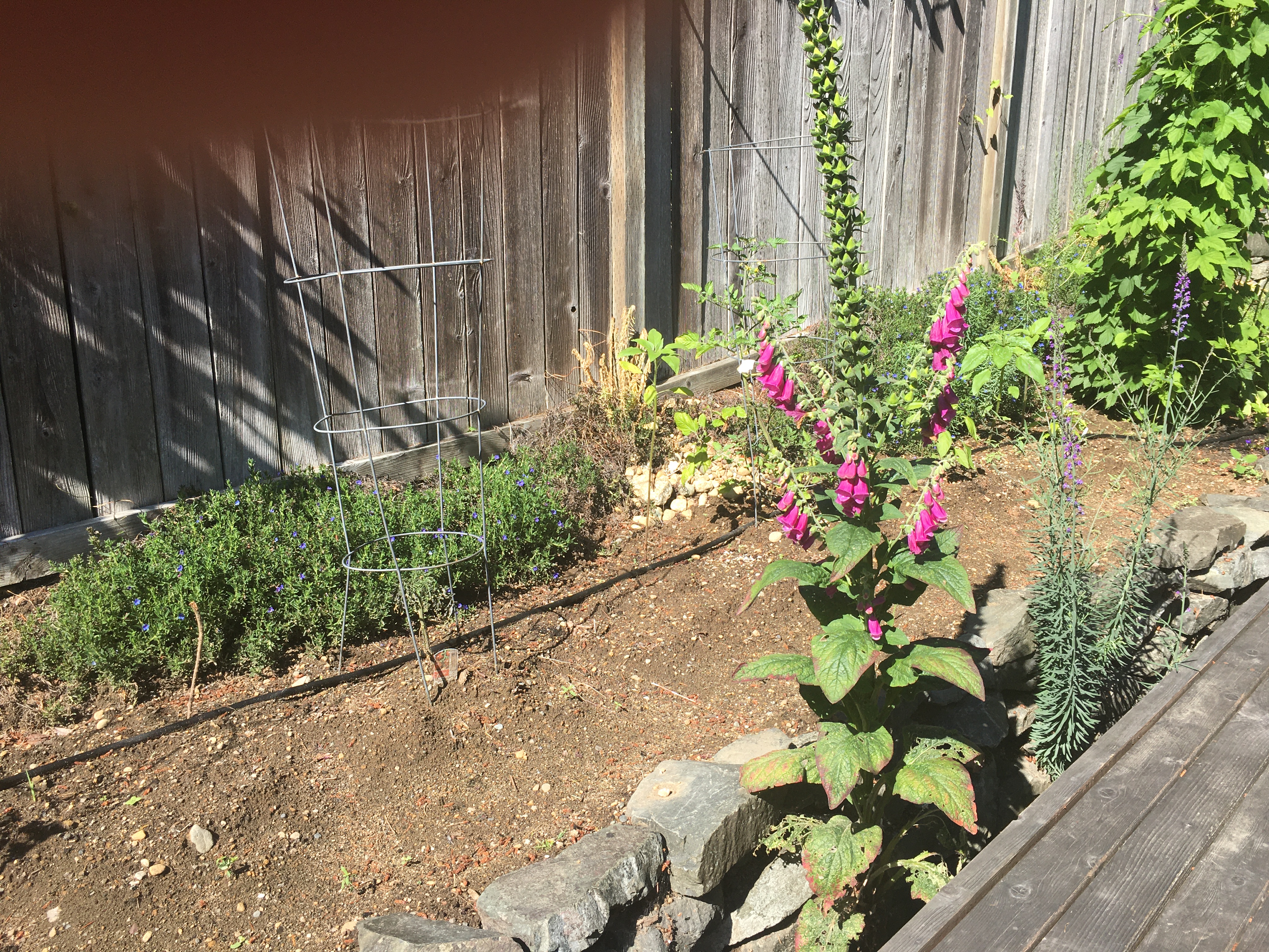 The East and North facing parts of our lower yard. Path is looking due south. We’ve had the best luck with tomatoes planted along the north facing fence. Tomatillos too. Sunflowers do well. Before we tried that location, we’d planted them all over, with little success except for cherry or grape tomatoes. Amazing along the north fence, as long as we stick to strictly heirloom Varieties, romas, or cherry/grape types. The tall vine you see is hops. We don’t use the plant, just kinda fun to grow. Will have to look into some possible uses for it, not beer tho. Getting ready to paint the deck, so no flower pots out yet. Basil in three large containers, not transplanted. Like to keep it in pots - makes it easier to keep an eye on. Lots of other garden areas, will share pics tomorrow, if beautiful weather holds out. Am enjoying a glass of wine deckside. Pure heaven. More rainy weather forecast for weekend. Meant to add, think the plants like the north fence due to warmer afternoon sun, as well as the wood absorbing the day’s heat and releasing it in the cooler evenings. Have pictured canning projects in other threads, with a huge crop of tomatoes a couple years ago. Crop last year not great, so ate, shared, and froze some. We rarely buy tomato products anymore, except for tomato paste and ketchup.