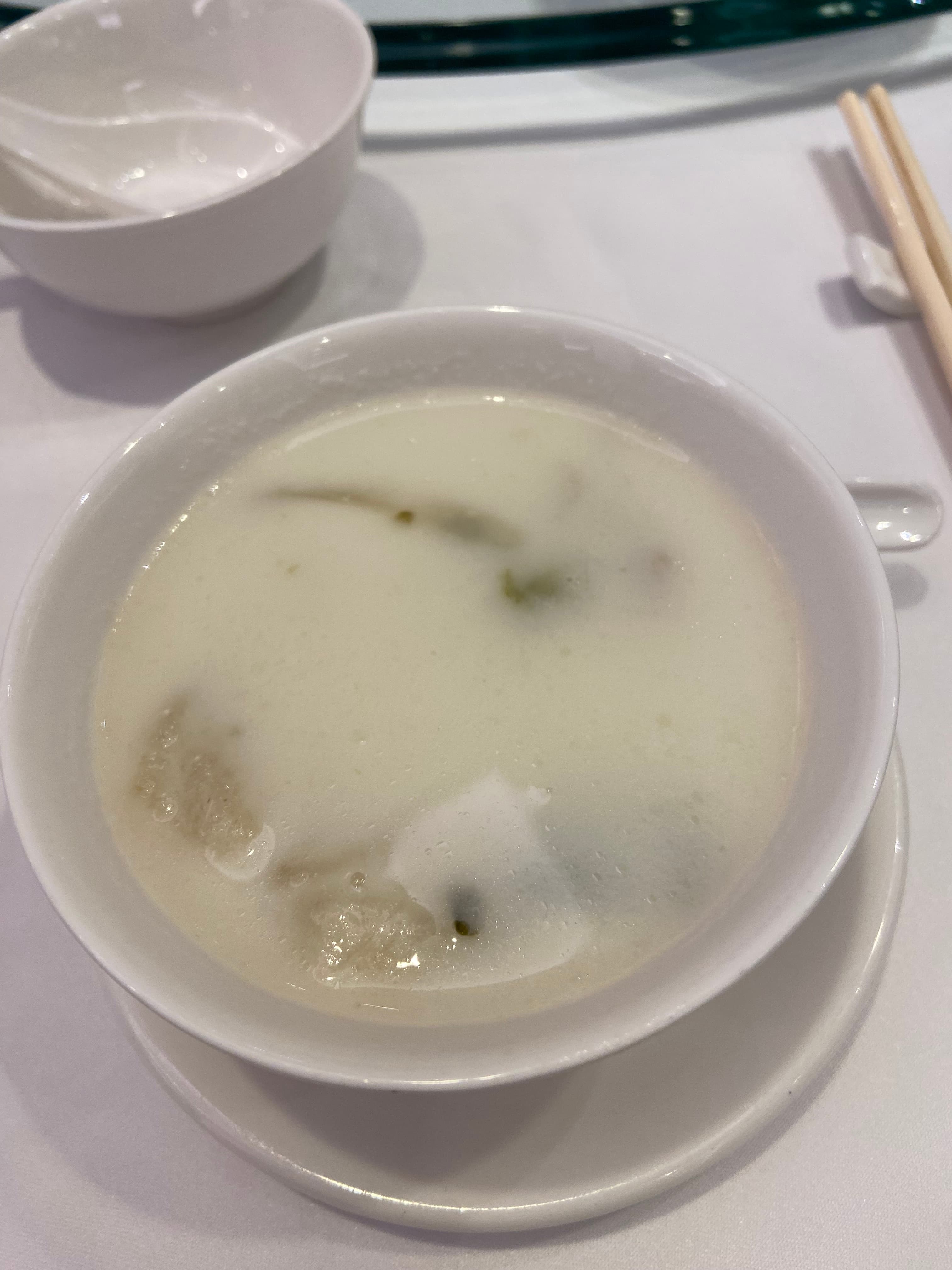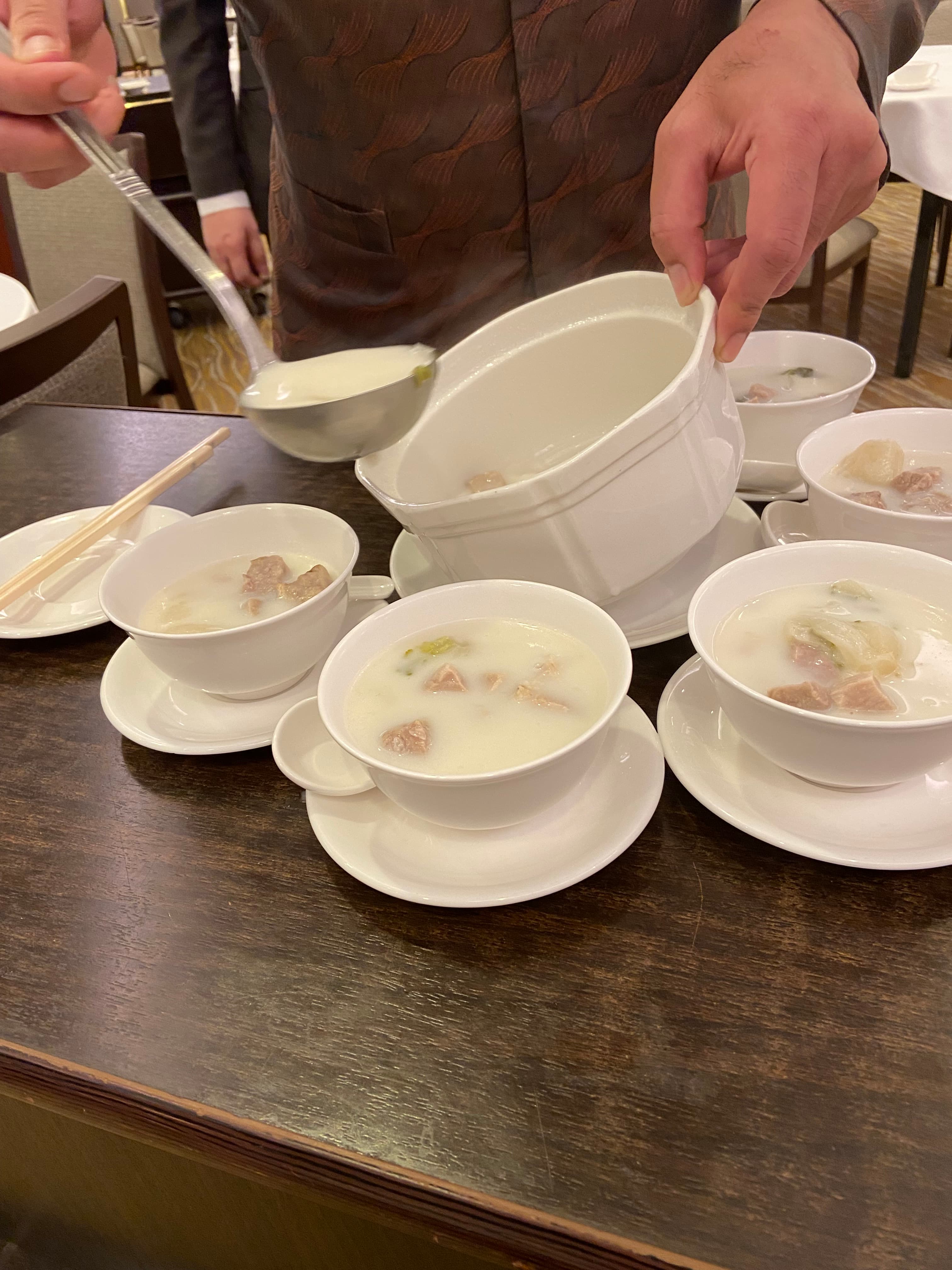 - Double Boiled, essence of Almond and Pig’s Lung soup … .a rare, uncommon find and treat. Wonderful, aromatic and intense, soooo good!