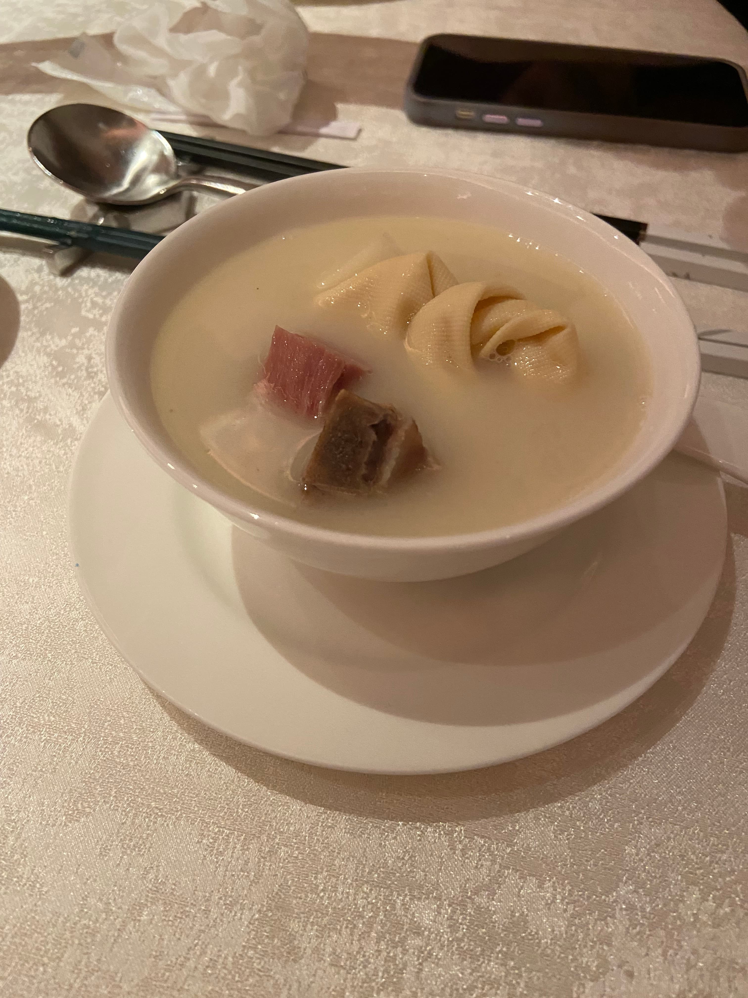 The sumptuous meal was a full-blown, multi-course, near banquet style affair featuring some exceptional, delectable and most of all, ‘authentic and traditional‘ Shanghainese dishes. Almost all my favorite cravings, including, ‘ Smoked ‘molten-lava yolk’ Duck Eggs ‘, ‘ Oil Poached River shrimp ‘, Stir fried and braised shredded Eel and yellowing chives in brown sauce and sizzling oil ‘, ‘ Yin Doak Seen Soup casserole ‘ , ‘ Silken Tofu with Shanghainese Hairy crab ragu and roe ‘ plus, of course, some authentic water fried buns, XLB and pot stickers were included!..The pan fried XLB a first for a few of us. Other additions include a dense and complex braised Chinese Hunan Ham with Taiwanese Cabbage and a well timed, stir-fried crab meat with egg white.