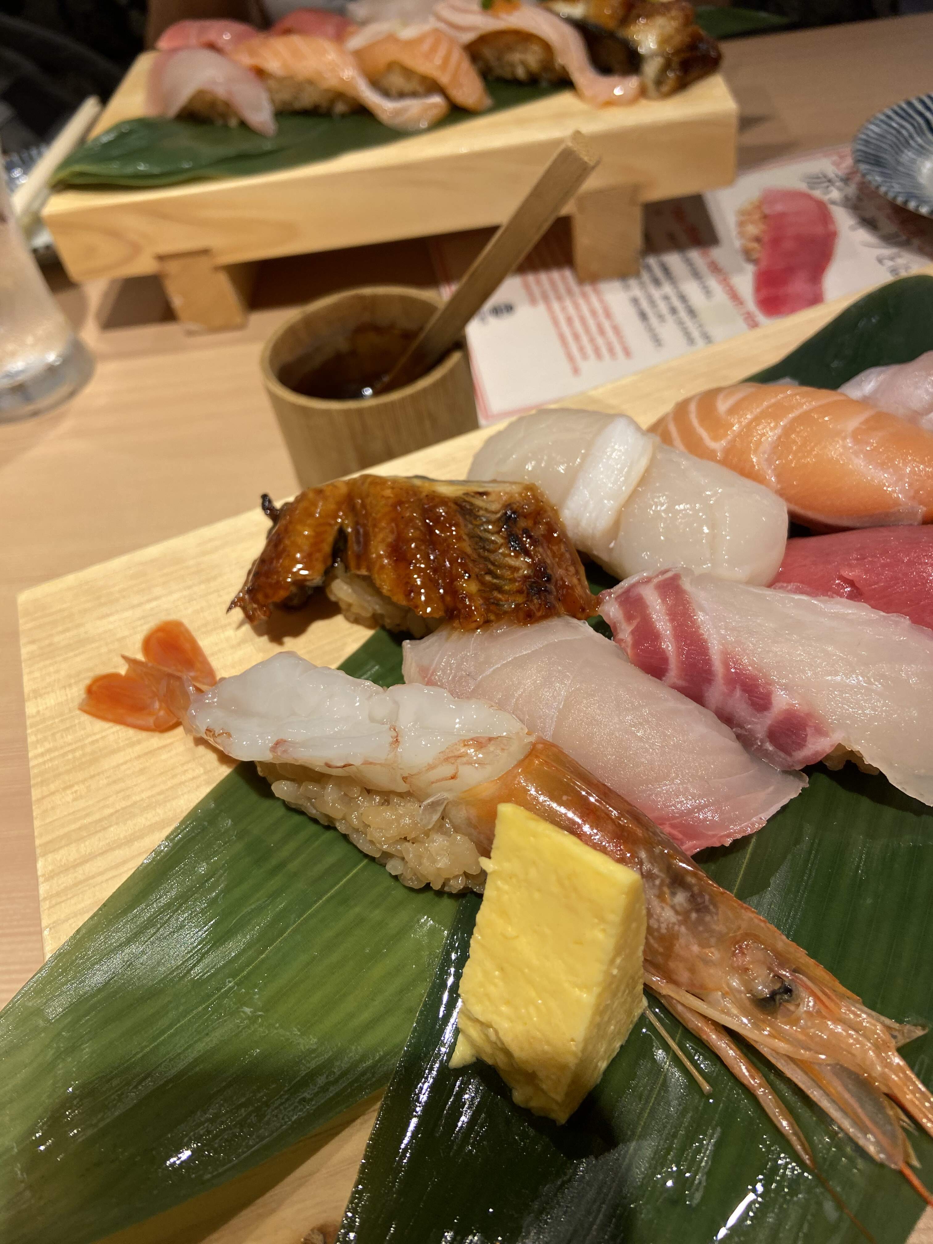 As alluded to above, we were both starving by the time we checked into our hotel room. As such, we decided to venture out and eat at the first acceptable looking eatery, near and around the vicinity of our hotel, that hopefully still remains open?! Half soaking wet, we walked past a meagerly rated,Tabelog 3.1 sushi-ya. Sushi Kizaemon and decided to walk in. To our surprise, the food, though not top notch, was more than acceptable and enjoyable……maybe our hunger greatly dampened our normally discriminating palate?! But then at these late hours, ‘ Beggars can’t be Choosers ‘!