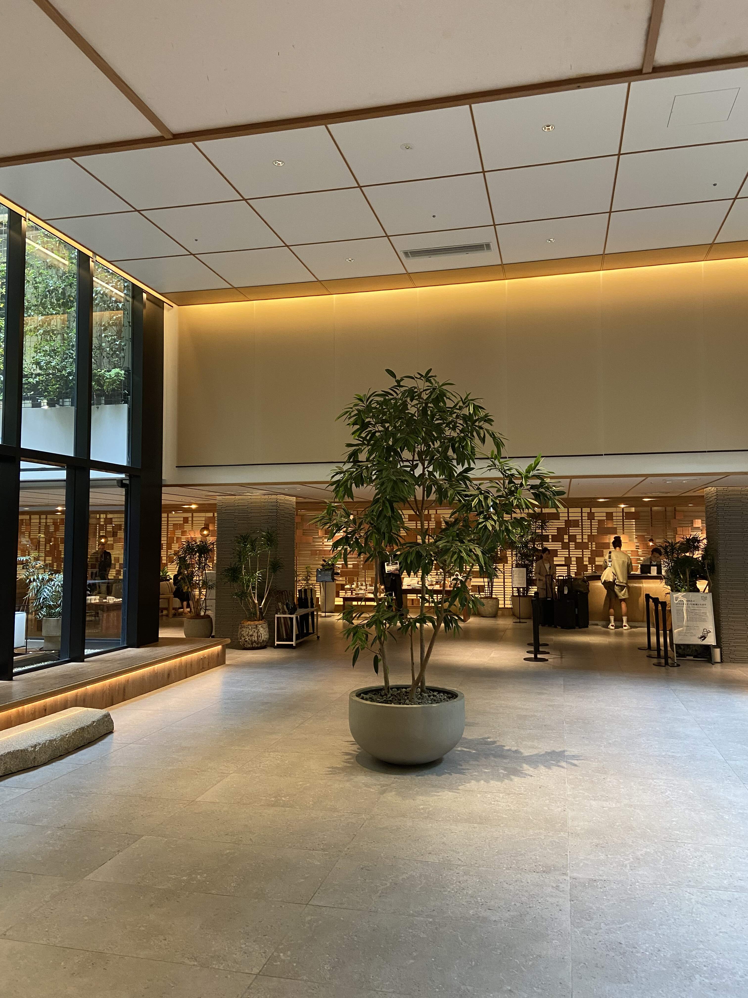 Situated in a convenient location next to a major metro-train station and Takashimaya department store, it is also a short walk from the popular GION district. The welcoming ZEN vibe of this environmentally friendly and sustainable hotel is centred around an impressive, jaw-dropping, multi-story high ‘Green Atrium Wall ‘. Covered with flowing hanging plants, strategically nourished by sunlight from the huge skylights above, the unique design creates a calming, tranquil and serene setting and sanctuary. Looking up, I can visualize what the Hanging Garden of Babylon was like!![]()