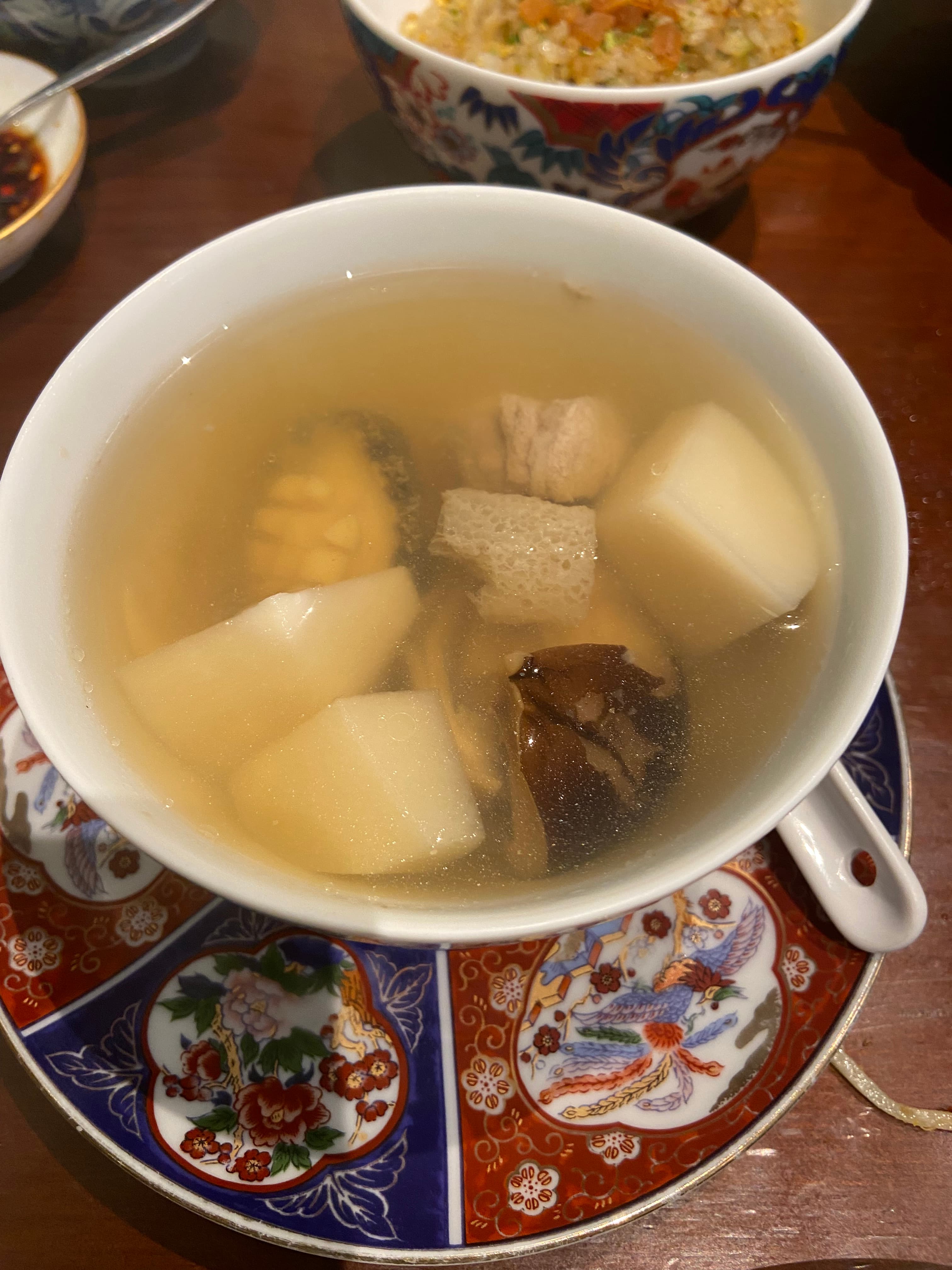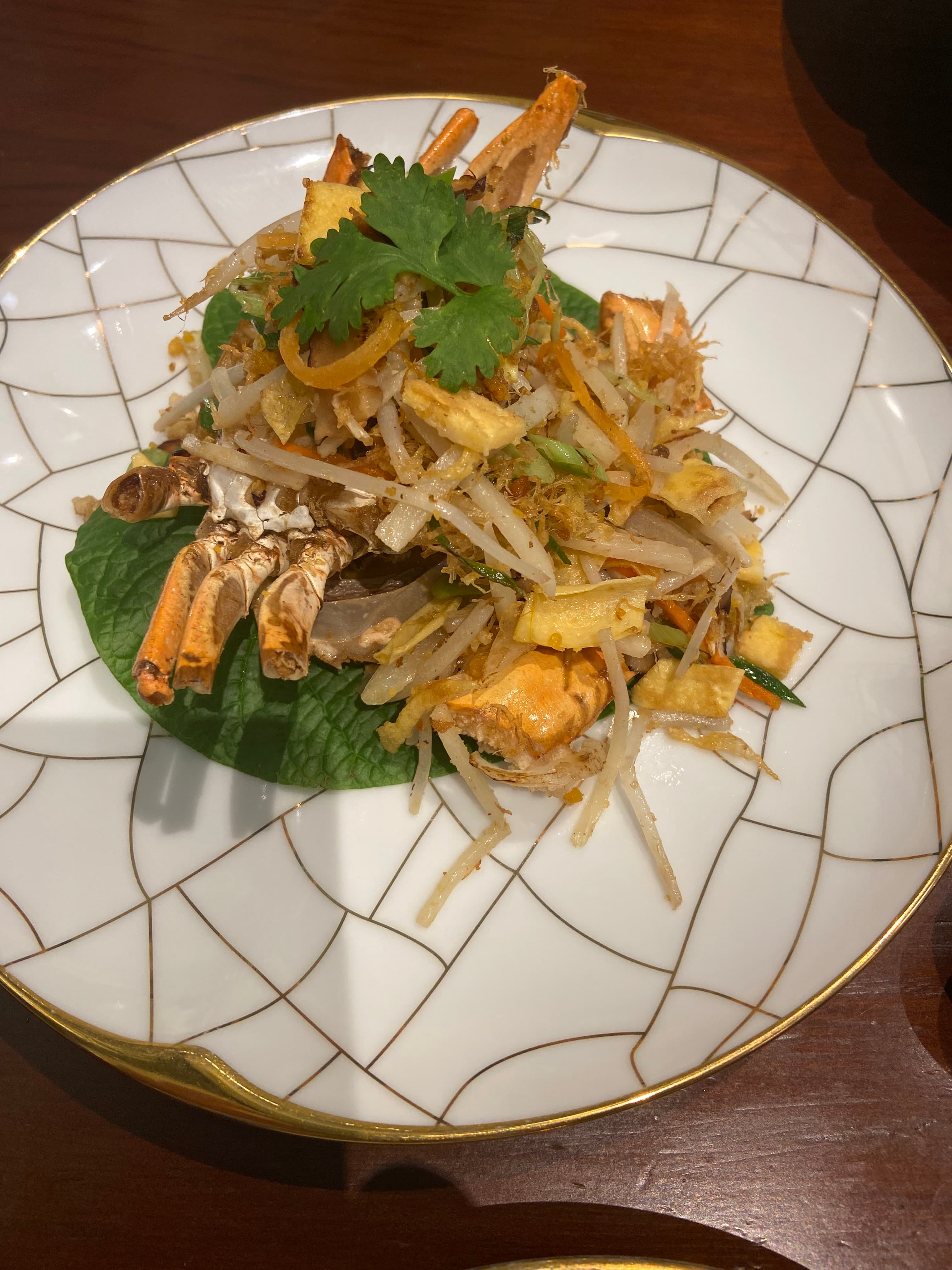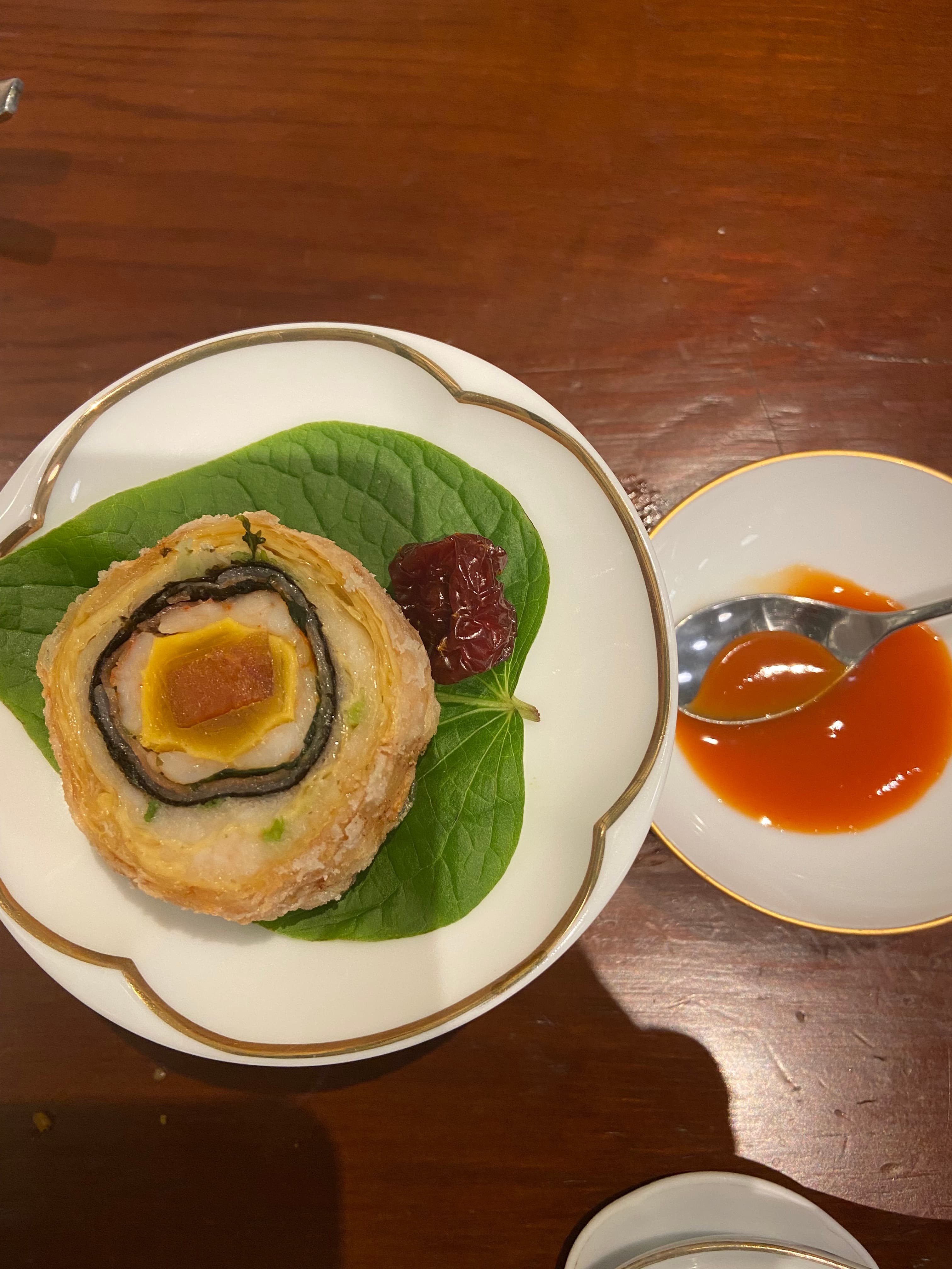 The refined food offering was dainty, elegantly crafted and artfully plated as reflected by the gorgeous looking appetizer platter of Drunken Prawns, Smoked local free range chicken, Taiwanese sausages, Braised Abalone….etc. Ingredients used were locally sourced, exotic and of high quality……Stirred fry shredded shark fin and Taiwanese vermicelli with whole local crab! Other dishes that highlighted the creativity and skill of the kitchen included a multi-component Taihei-cho Rose Prawn roll ( prawns, mullet fish paste, salted duck egg yolk, Erfan Tofu skin…..). Its creation, labour intensive…… the end result, visually appealing and delectable. The rest of the menu, comprising umami packed dishes like the Braised Winter Melon, 4 precious double boiled soups and Mullet roe and conpoy fried rice, were refreshing, delightfully delish and light. Perfect for lunch! The only exception was the red braised pork ribs which were tasty but a touch on the heavy side.