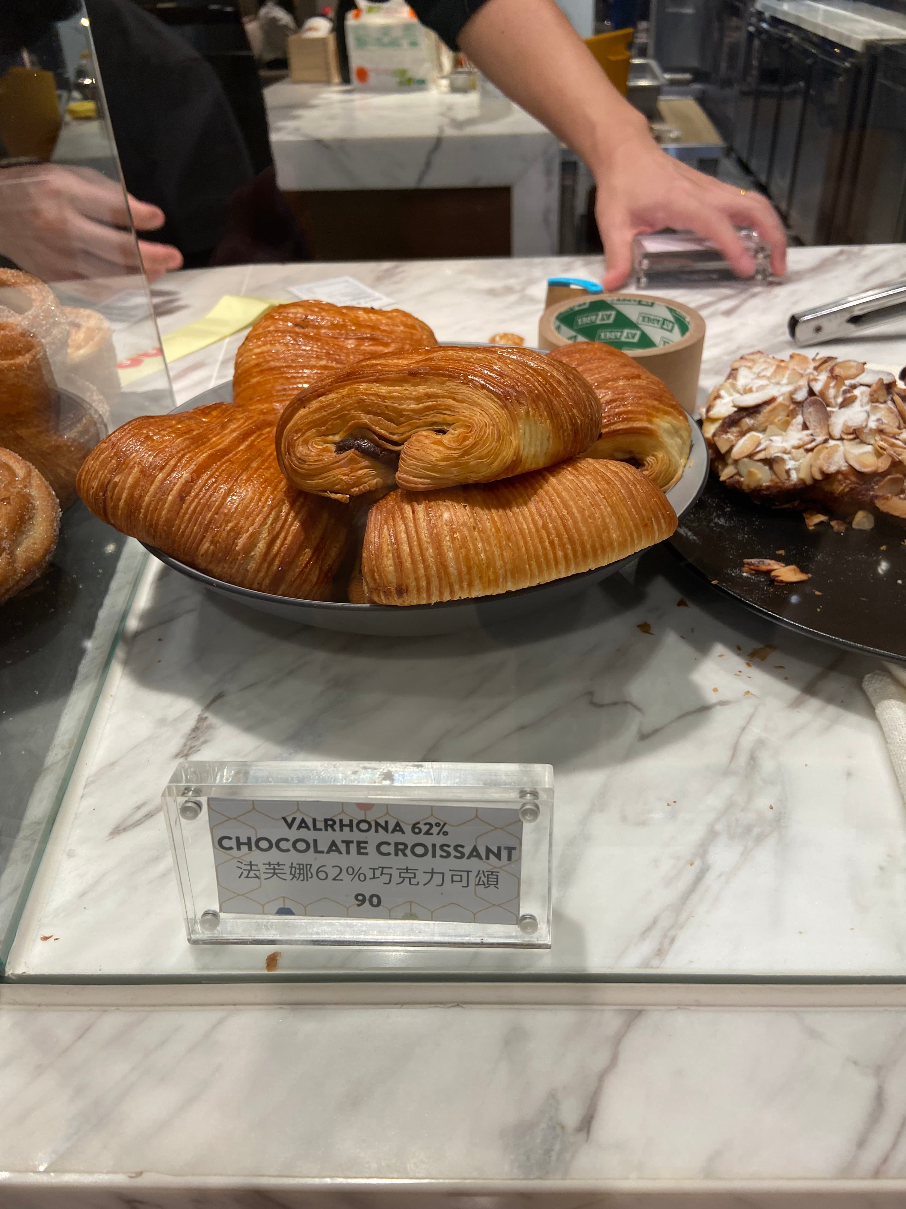 Next, we Uber to Taipei 101 and roam around the massive, modern mall in the hope of working off some calories!..Unfortunately, I came across this Patisserie/cafe displaying near perfect looking Croissants and Pain au Chocolate using 67% French Valrhona dark chocolate……!! Oops!! ![]()