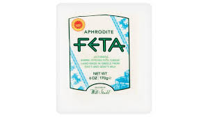 $3.99/6 oz. wedge in plastic, Aphrodite Greek PDO Authentic Feta made with sheep and goat milk, aged 3 months in wooden barrels. A little creamier and not as crumbly as regular feta, it has notes of almond and walnut. and may be the best feta I’ve tried. Made from milk of grazing animals on slopes of central Greece.