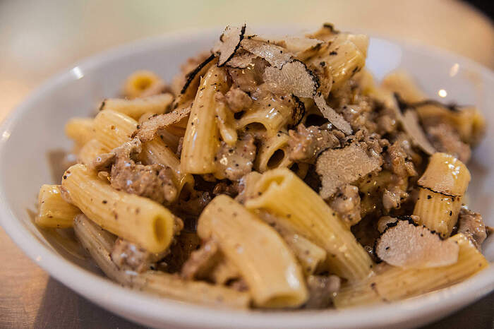 A tumultuous pile of golden fried squid, prawns, fennel, and shishitos came to the table hot and delicately crunchy, without a hint of greasiness. A delight, and would go great on a hot day with a cold birra in hand.