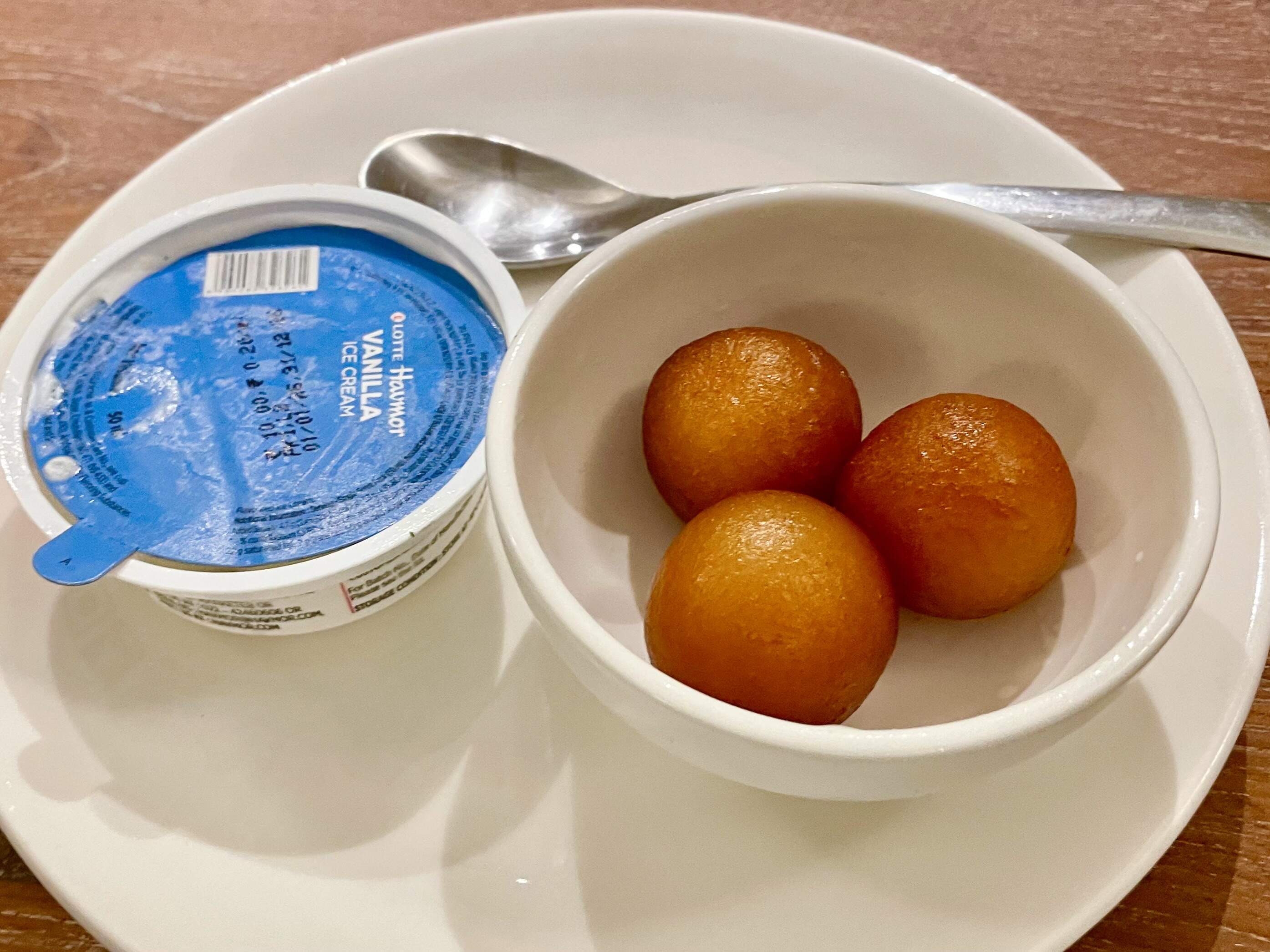 Frozen gulab jamun have become a frozen food staple at the chain grocery stores across southern Ontario, so the frozen commercial ones are located close to the ice cream! LOL