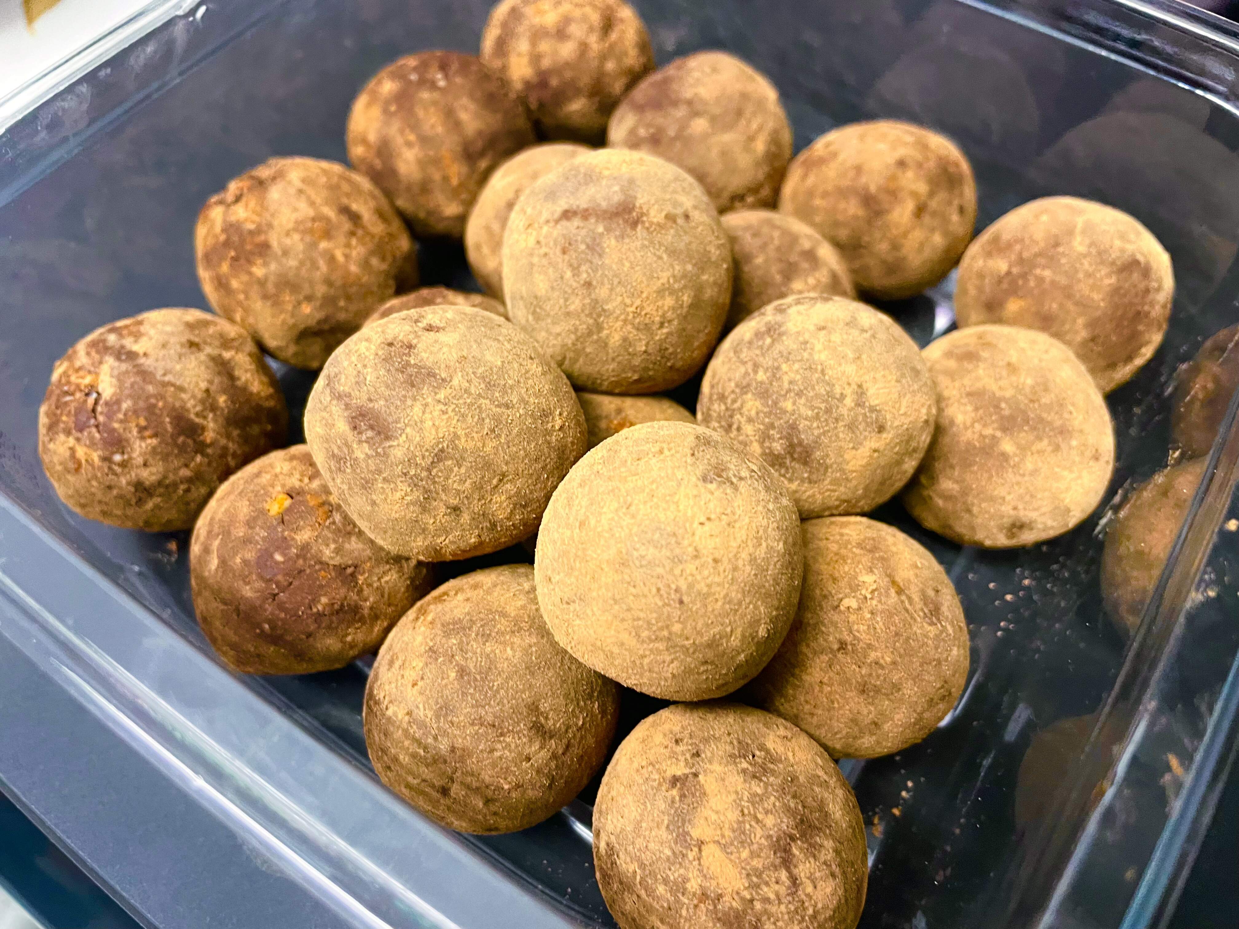 Dates, almonds, hazelnuts, cocoa, vanilla, and rum – boozy!