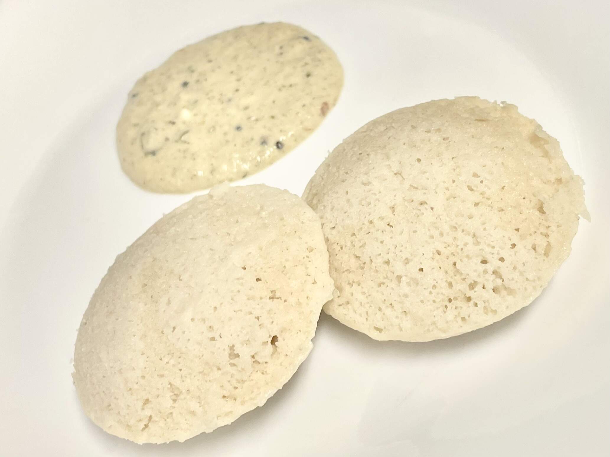 Steamed cakes / Idlis: just the batter with salt.