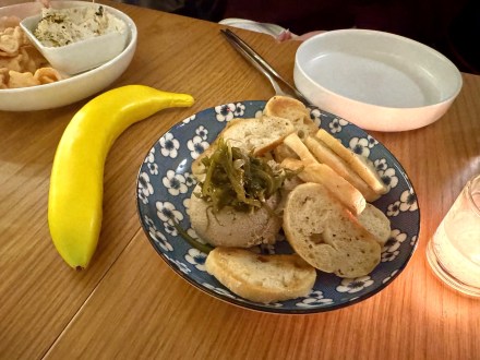 The Ziggy clan just went Bananas in East Village. A one year old Bananas theme restaurant opened by two young guys with extensive NYC cooking experience including Michelin. Playful, Asian, New American / Nola mesh. Gimmicky, but there’s a story behind the name, and the food is mostly excellent. The Étouffée with shrimp and shrimp wontons is reason enough to go. Chicken Liver Mousse with pickled scallions, and Char Siu were other highlights. Their octopus sounds promising as well but they were out. Feeling lazy. Full story here…
