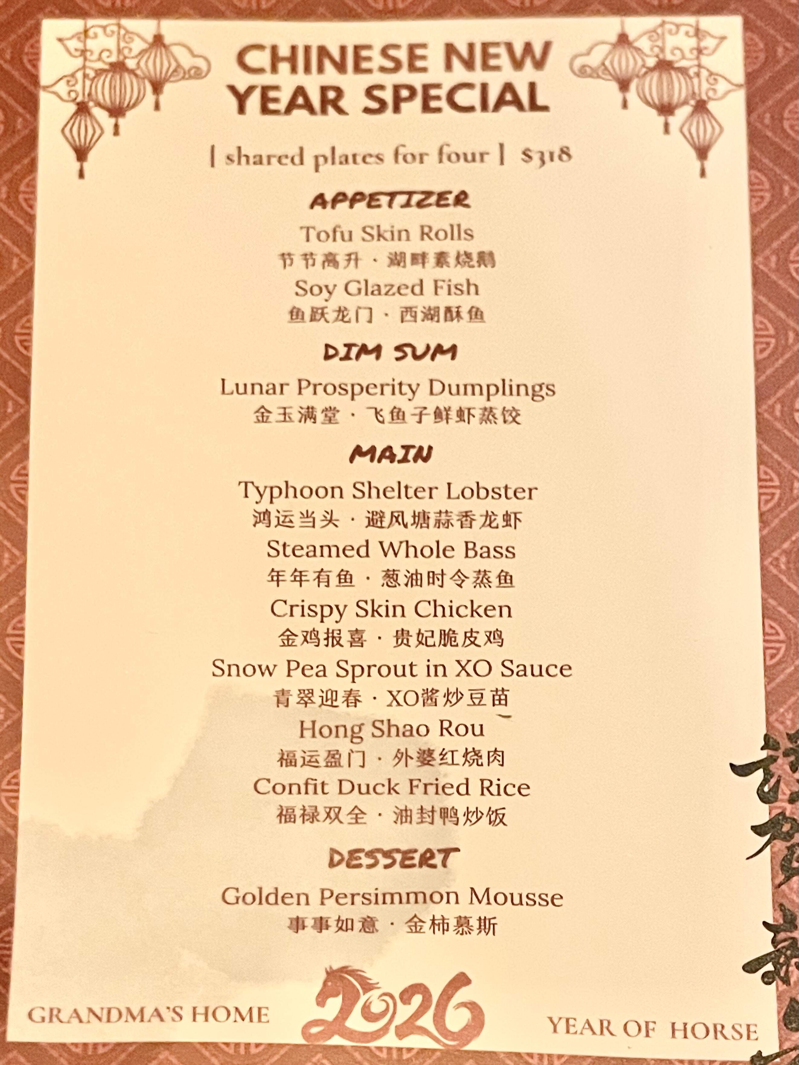 Special Menu for Lunar New Year: