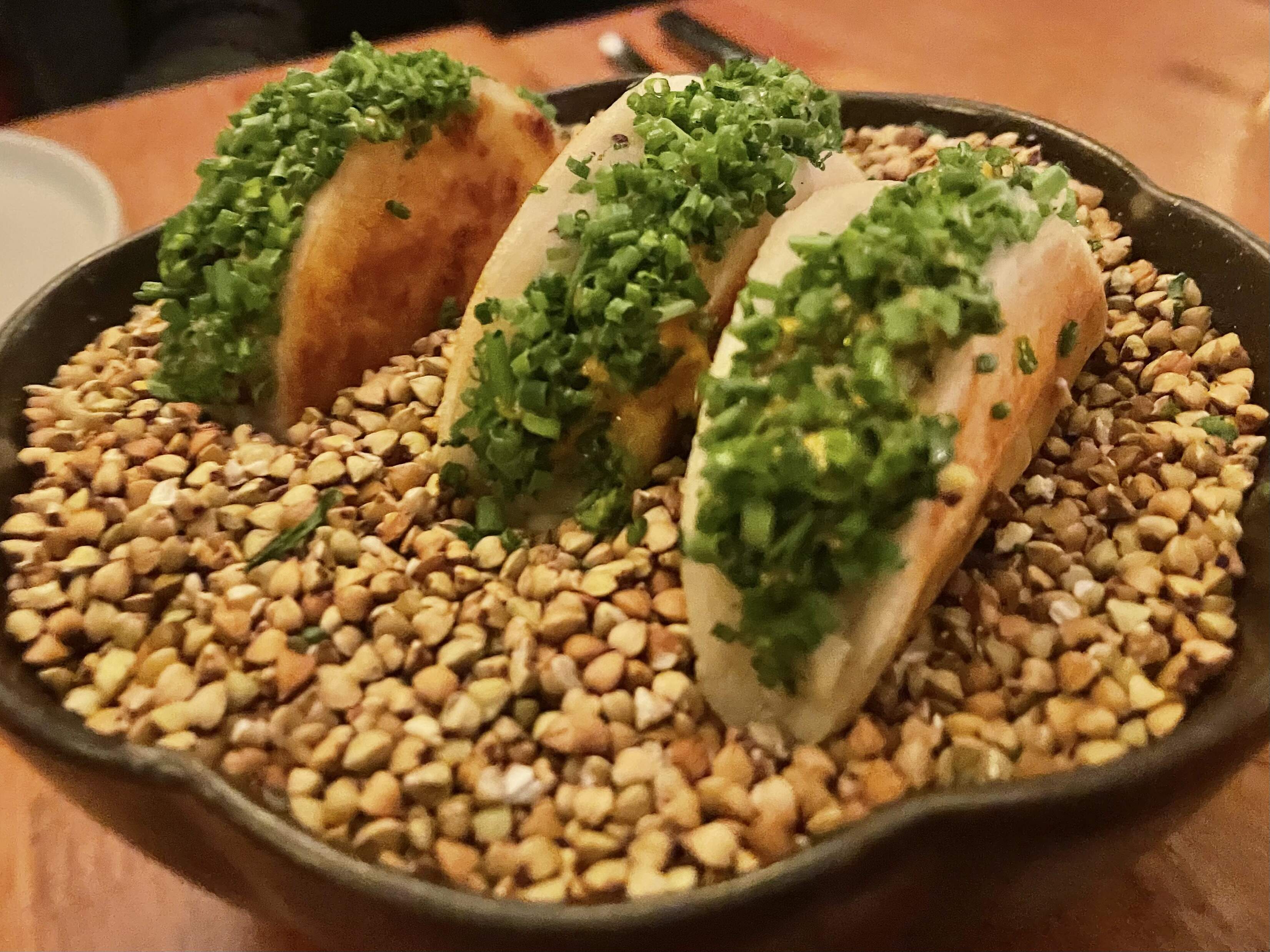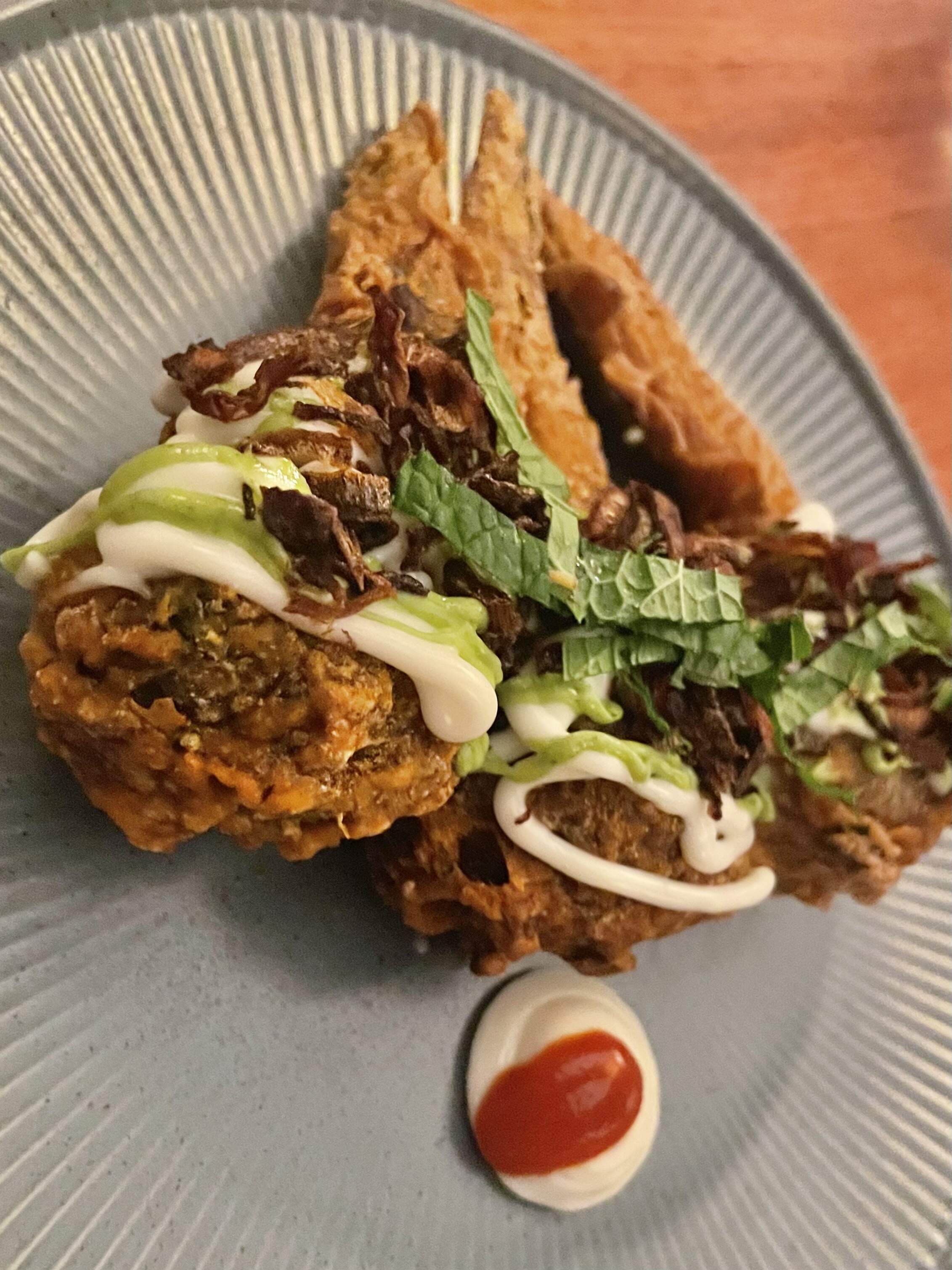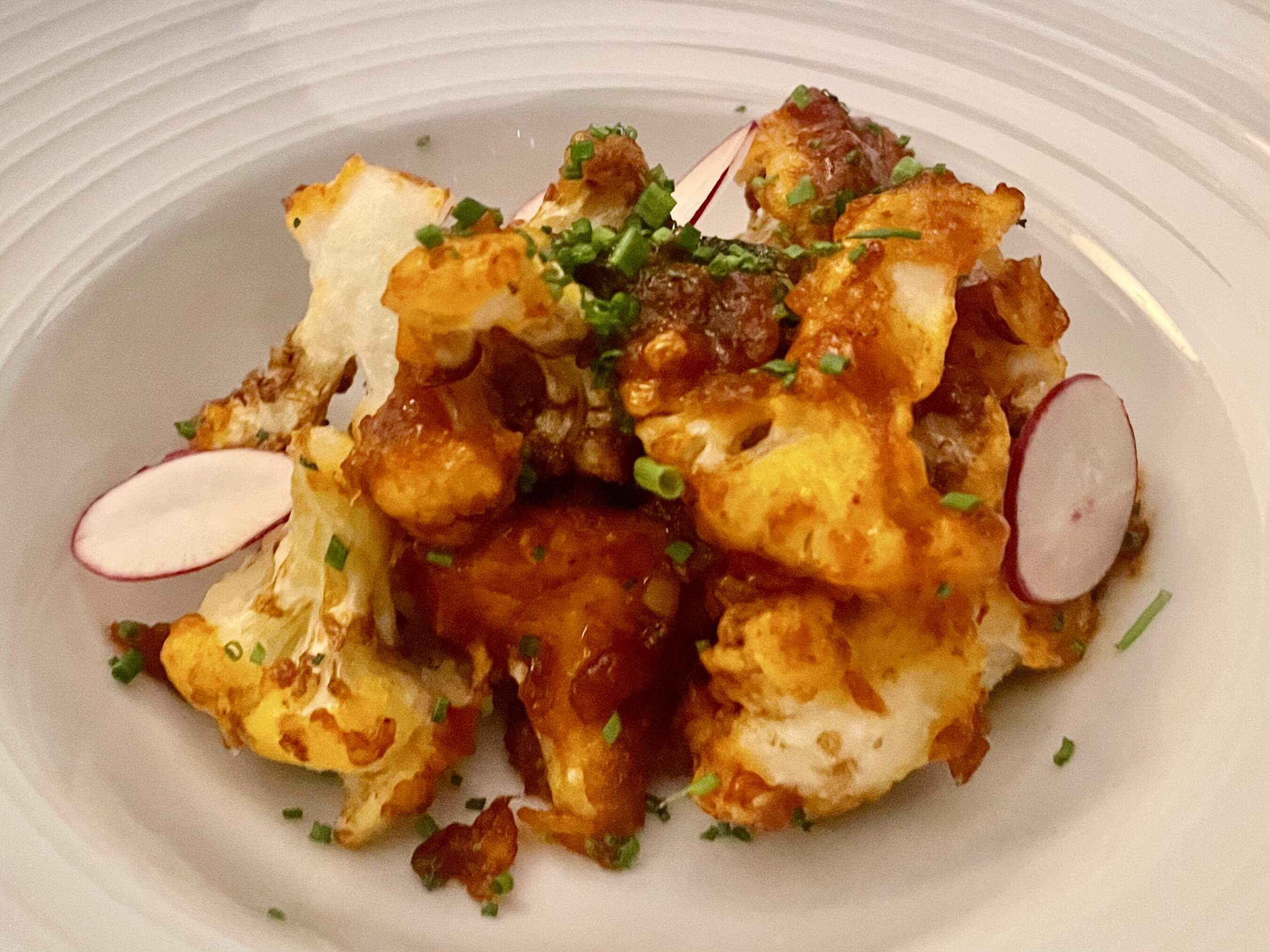 Some interesting / different bites, and some that are easy hits on these menus. Very accommodating service (eg adding an extra piece to a dish so everyone could have one). The two chicken apps were my favorites of the evening – the kofta and the biryani (stuffed) wings.