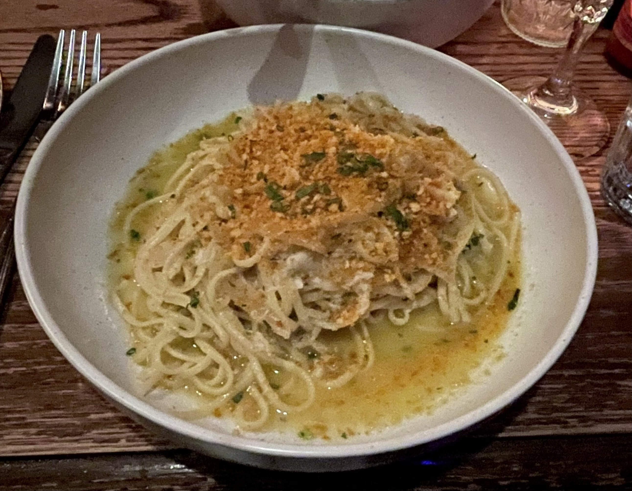 Another special, crab pasta. A very generous portion, but it arrived a little cooler than I would have liked, and I found it too buttery (this might be a me problem).