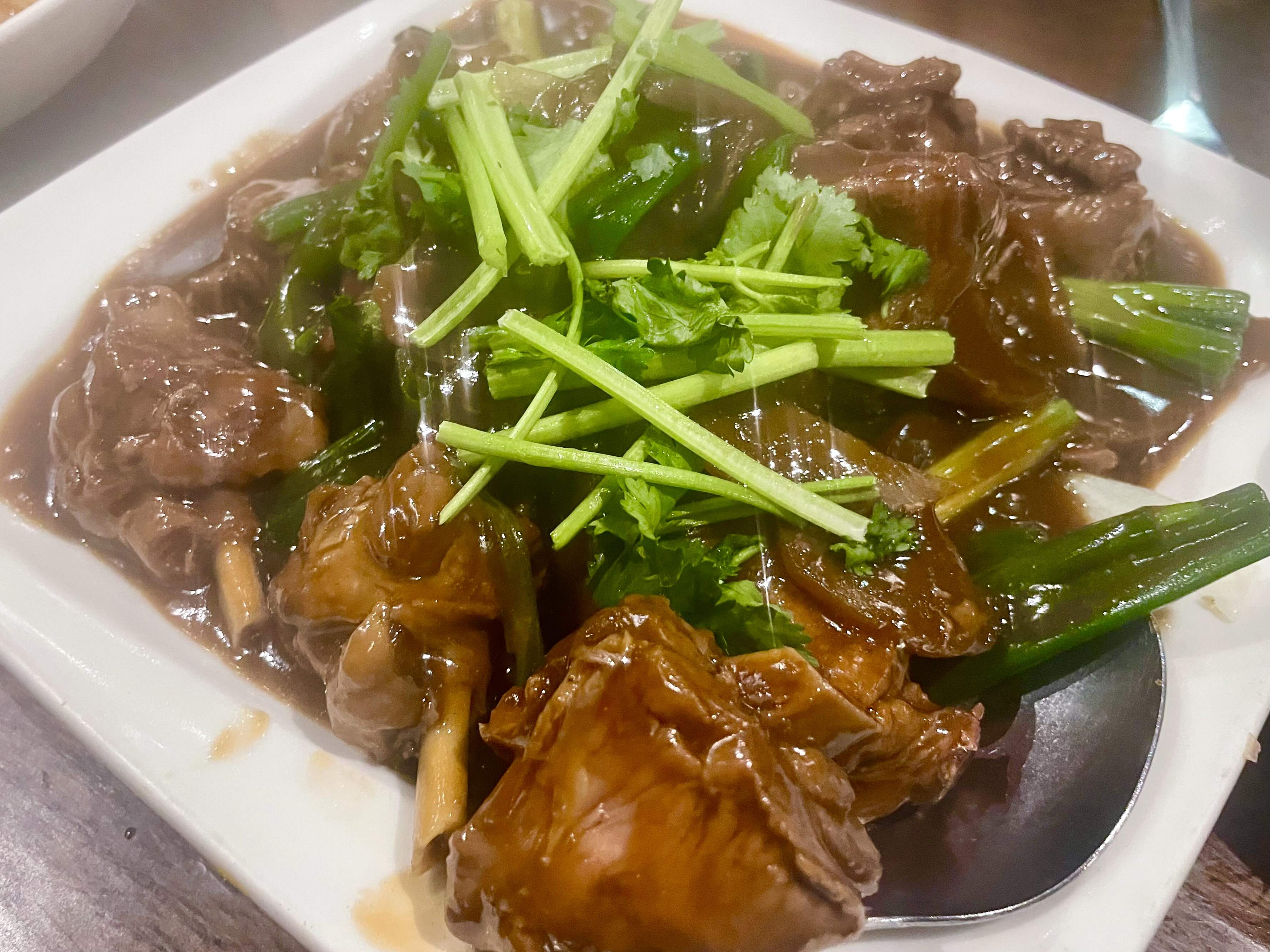Onions, shrimp paste, soy sauce were predominant. I didn’t really taste much tamarind but I trust @JenKalb’s palate. And there were curry leaves and whole red chillies in the mix, though it was not a spicy dish at all. Savory with a sweet tinge.