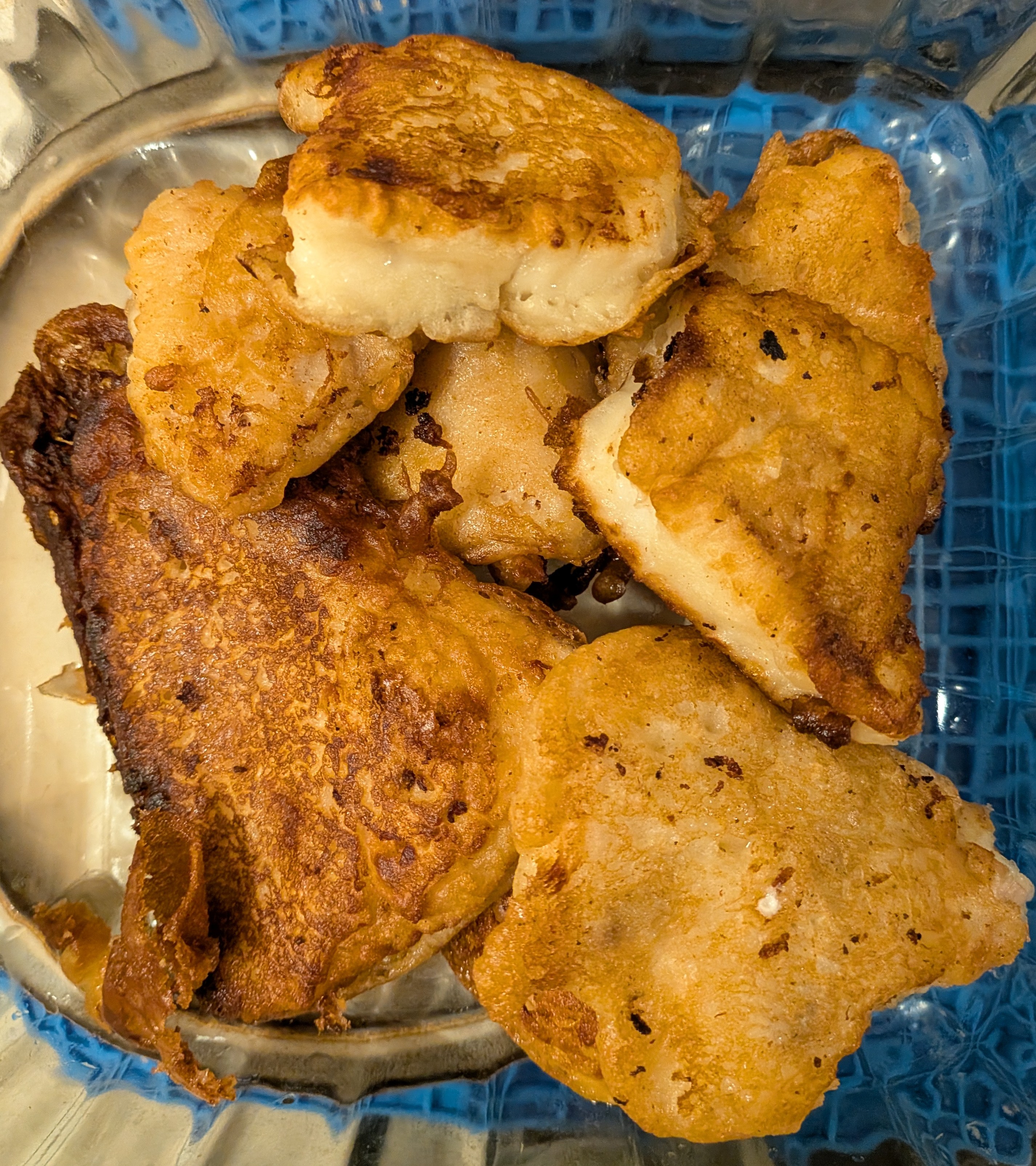 pickerel and ocean perch, shallow fried in a ginger ale-flour-baking powder batter