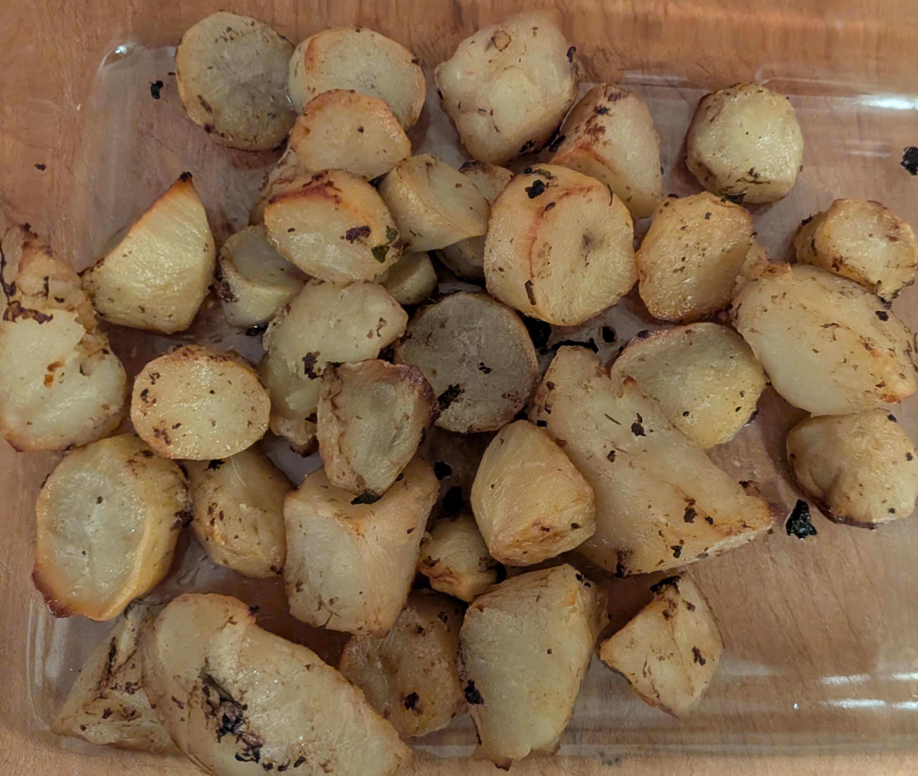 I didn’t have it in me to make homemade rolls – they weren’t missed. We are both quite full.