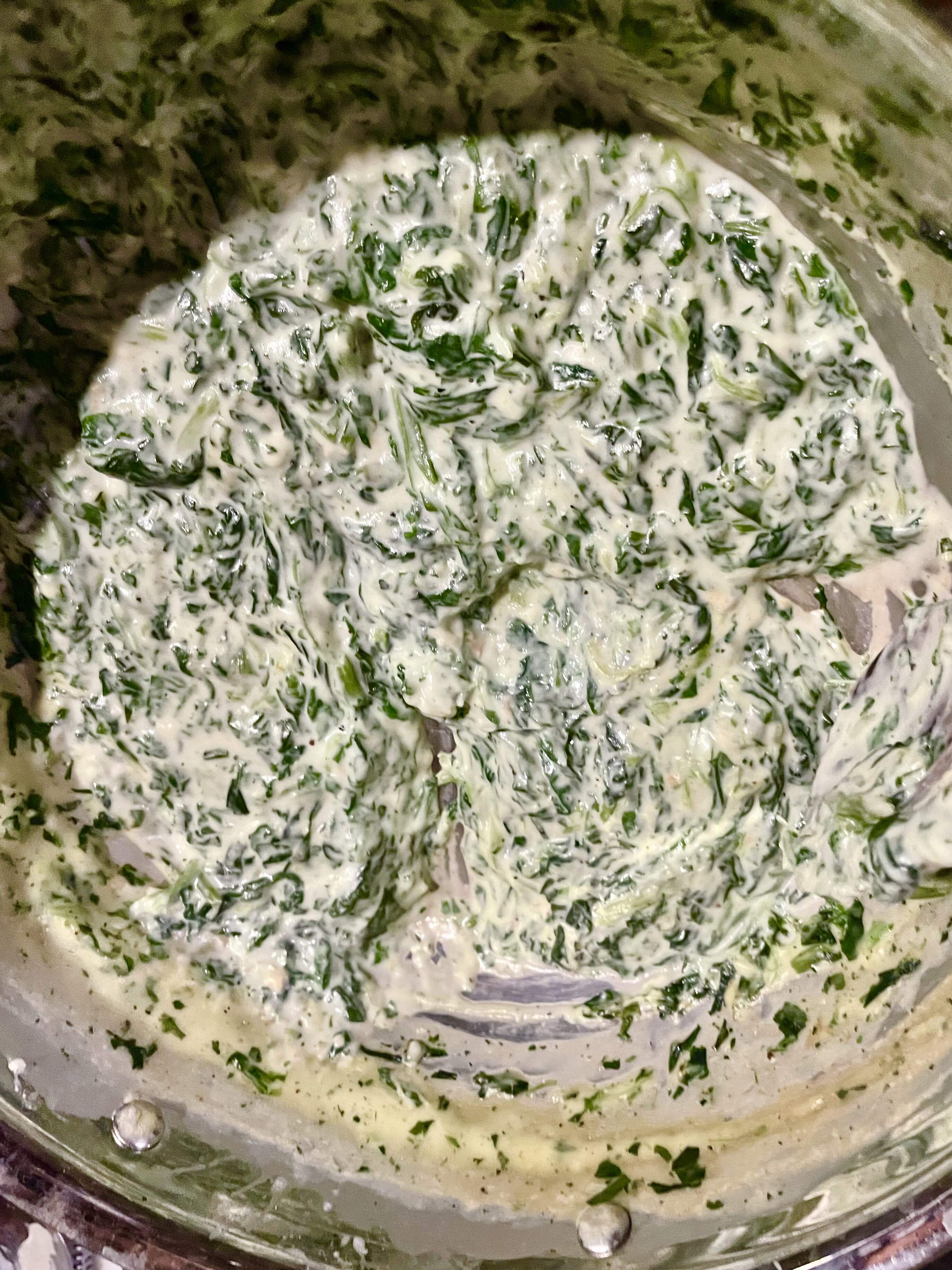 Just delicious — roasted lamb chops and homemade creamed spinach. I was too hungry to remember to take a pic of the prettily plated meal, but I did remember a pic of the leftovers .