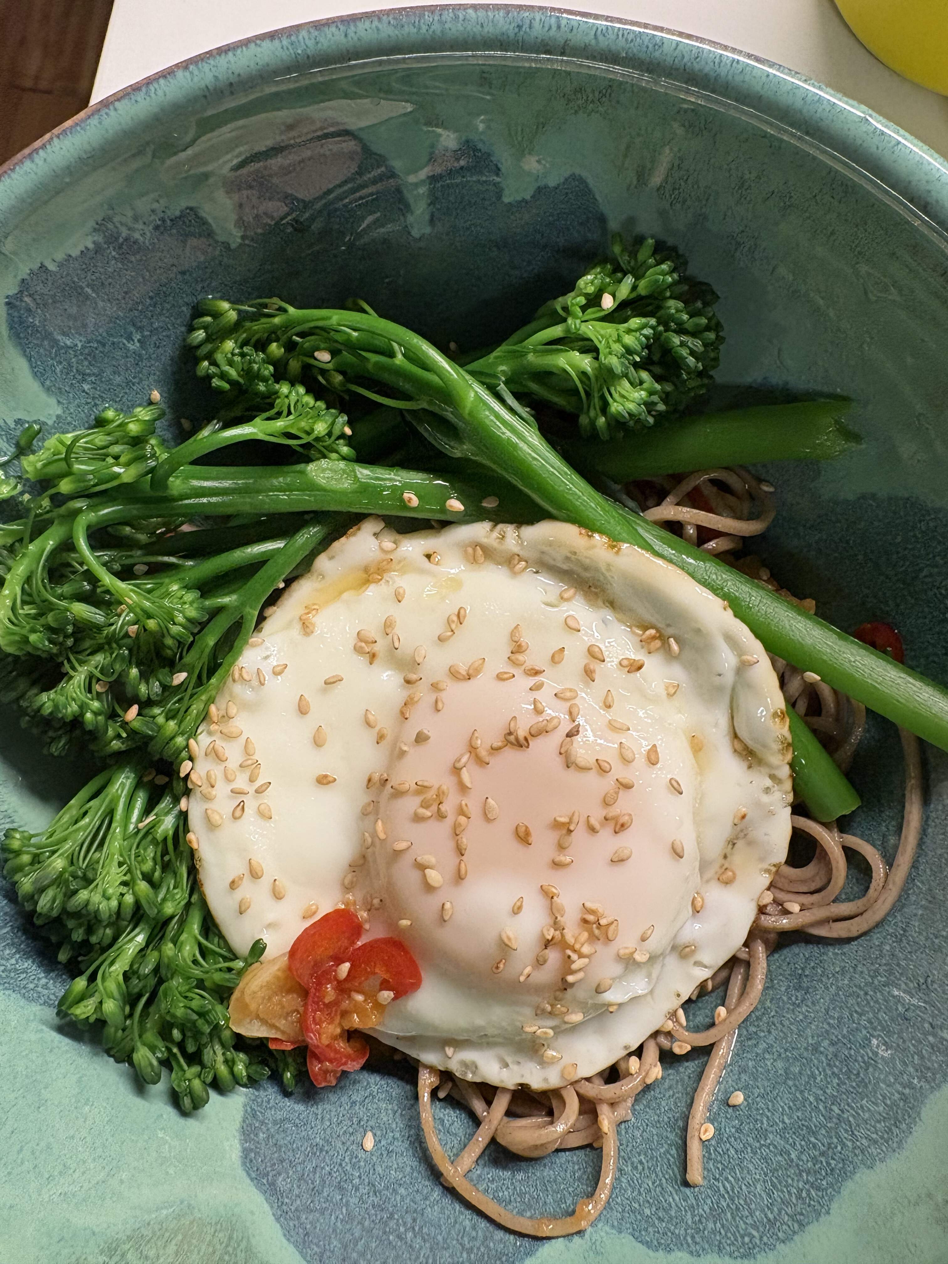 SOBA NOODLES WITH CHILE, BABY BROCCOLI, AND A FRIED EGG p. 295 A Change of Appetite