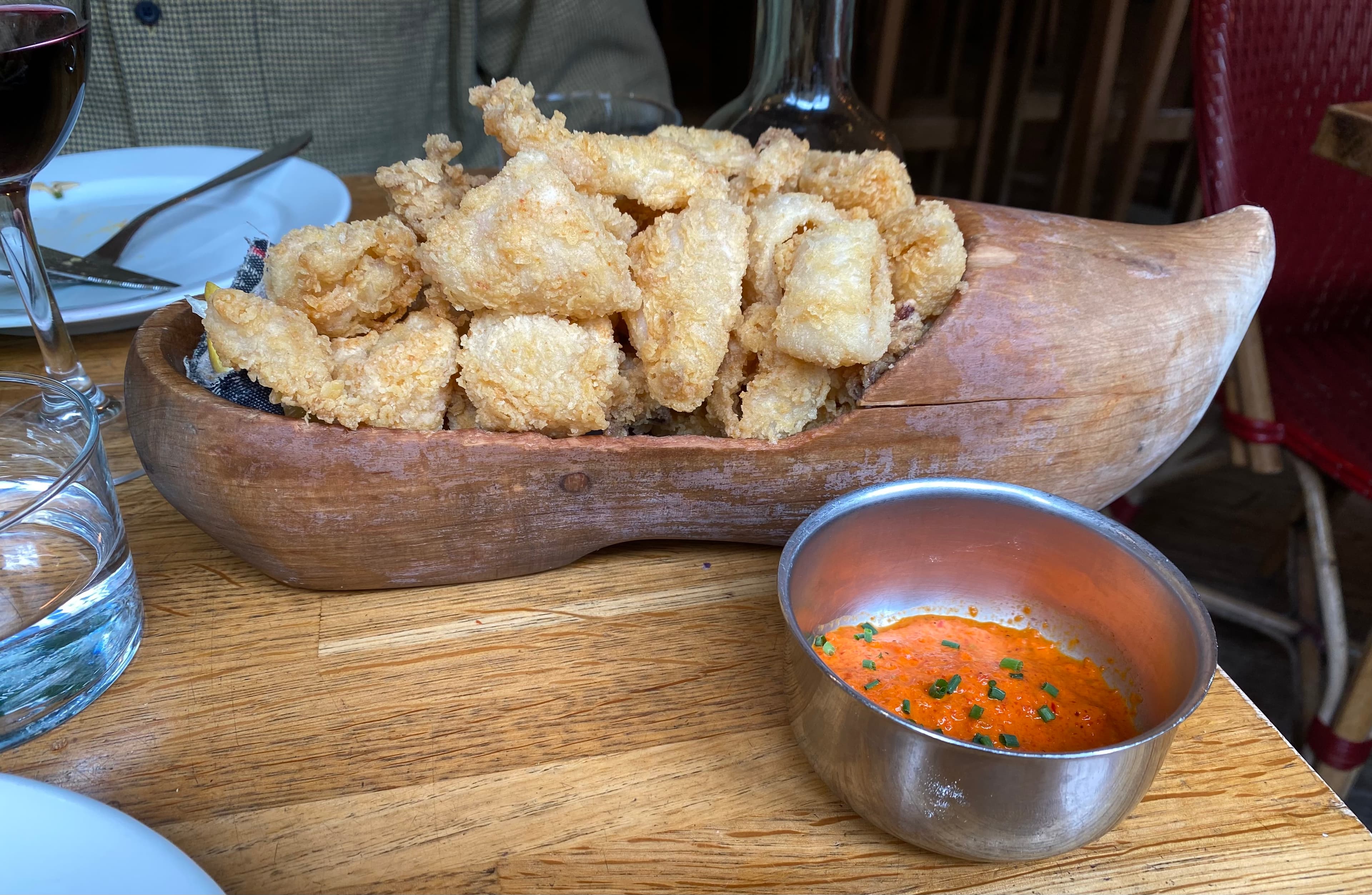 I had been to the sister (?) restaurant, Dans les Landes, years ago, and loved it, so I was really looking forward to this lunch. I had especially fond memories of the chipirons, baby squid. They were on the menu, but there was nothing baby about them. They were still nicely cooked, but not as succulent and tender as I remembered. And even though espelette is mild, there was absolutely no hint of it whatsoever.