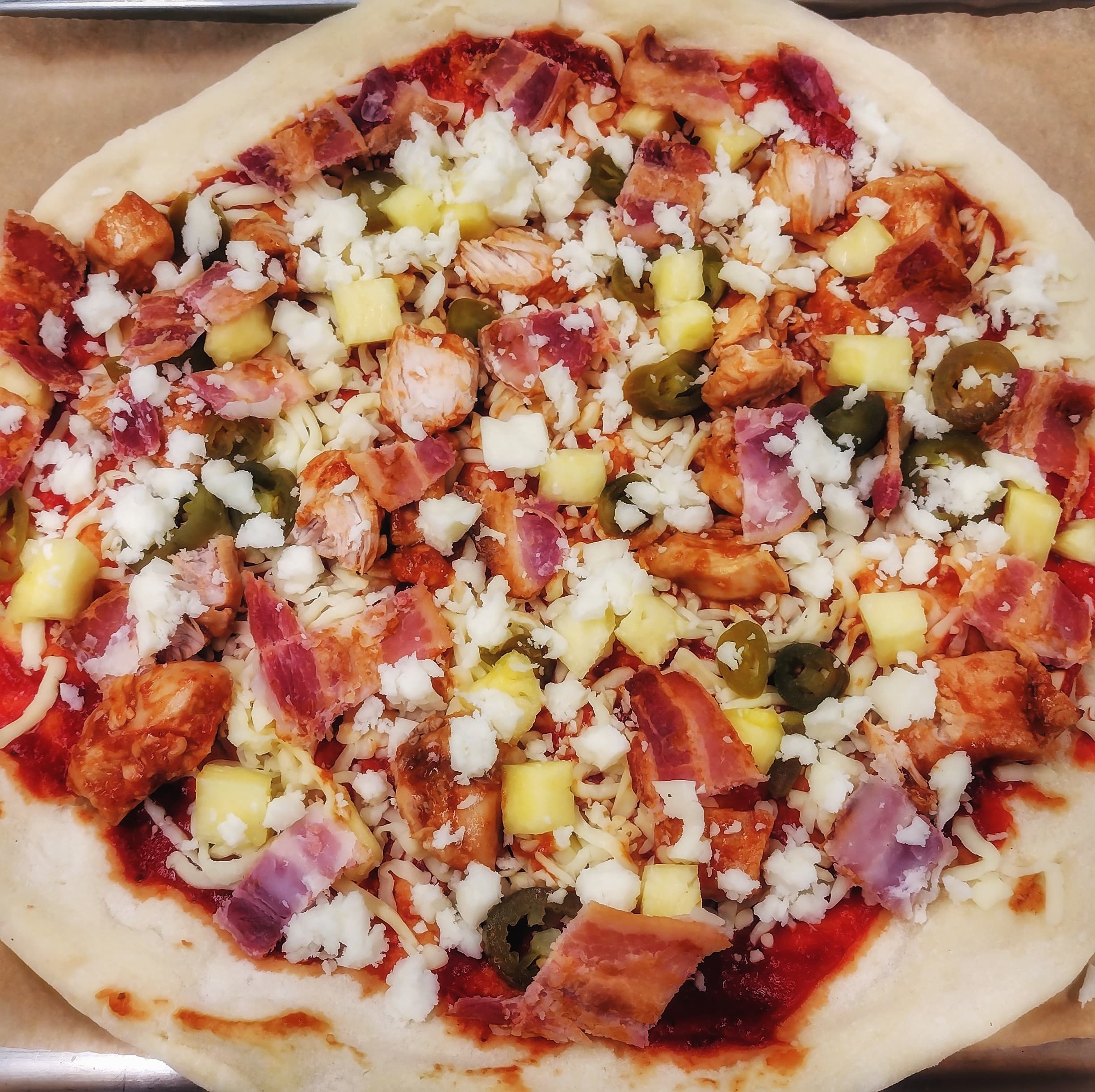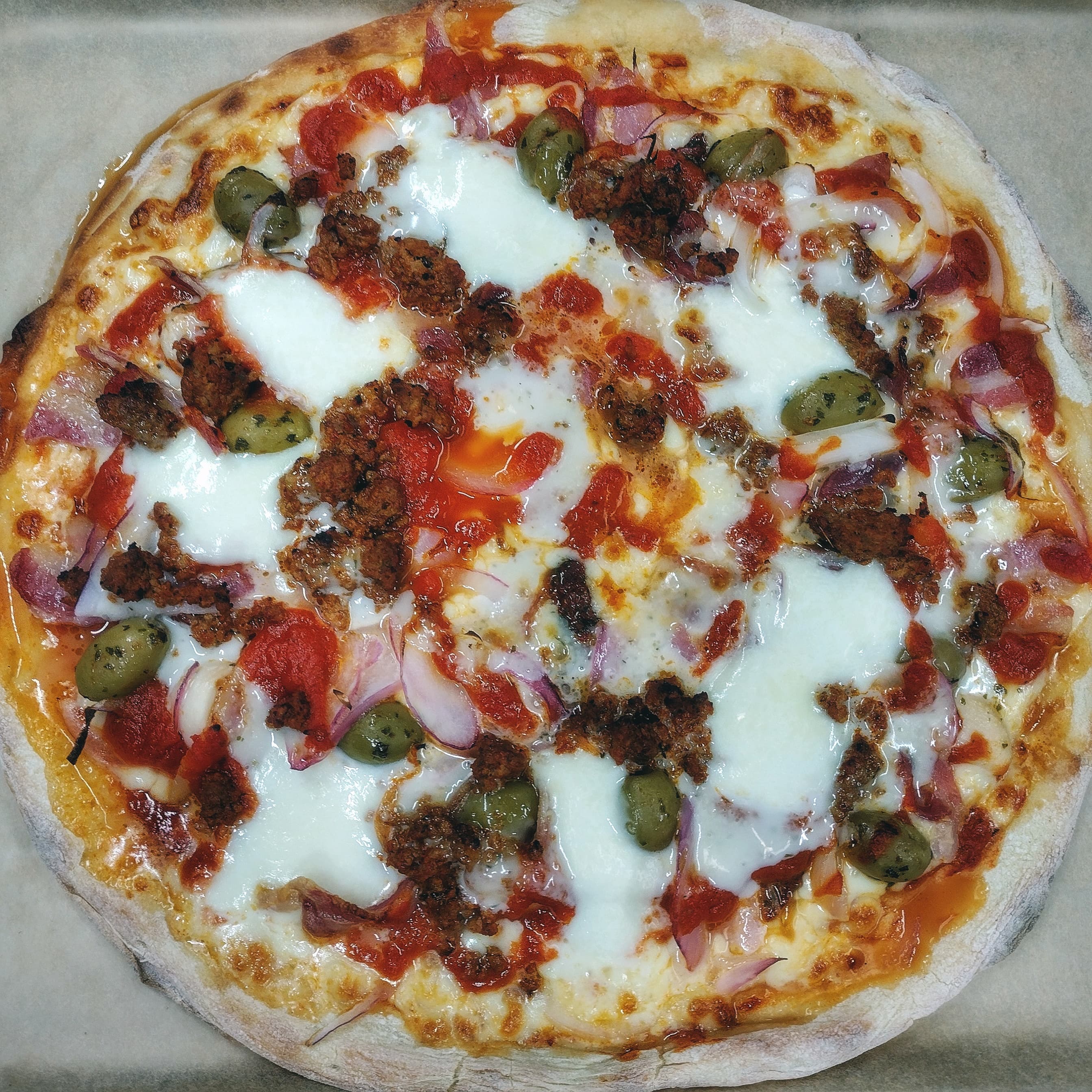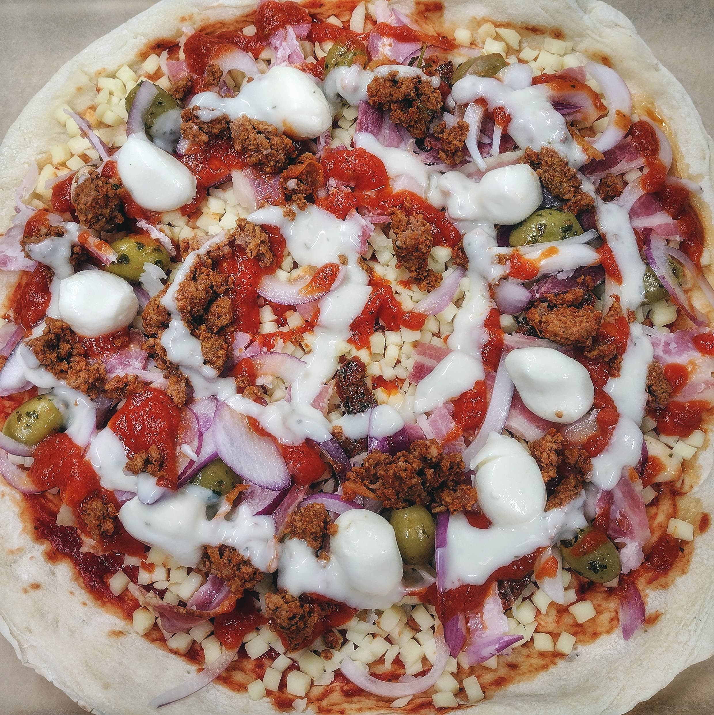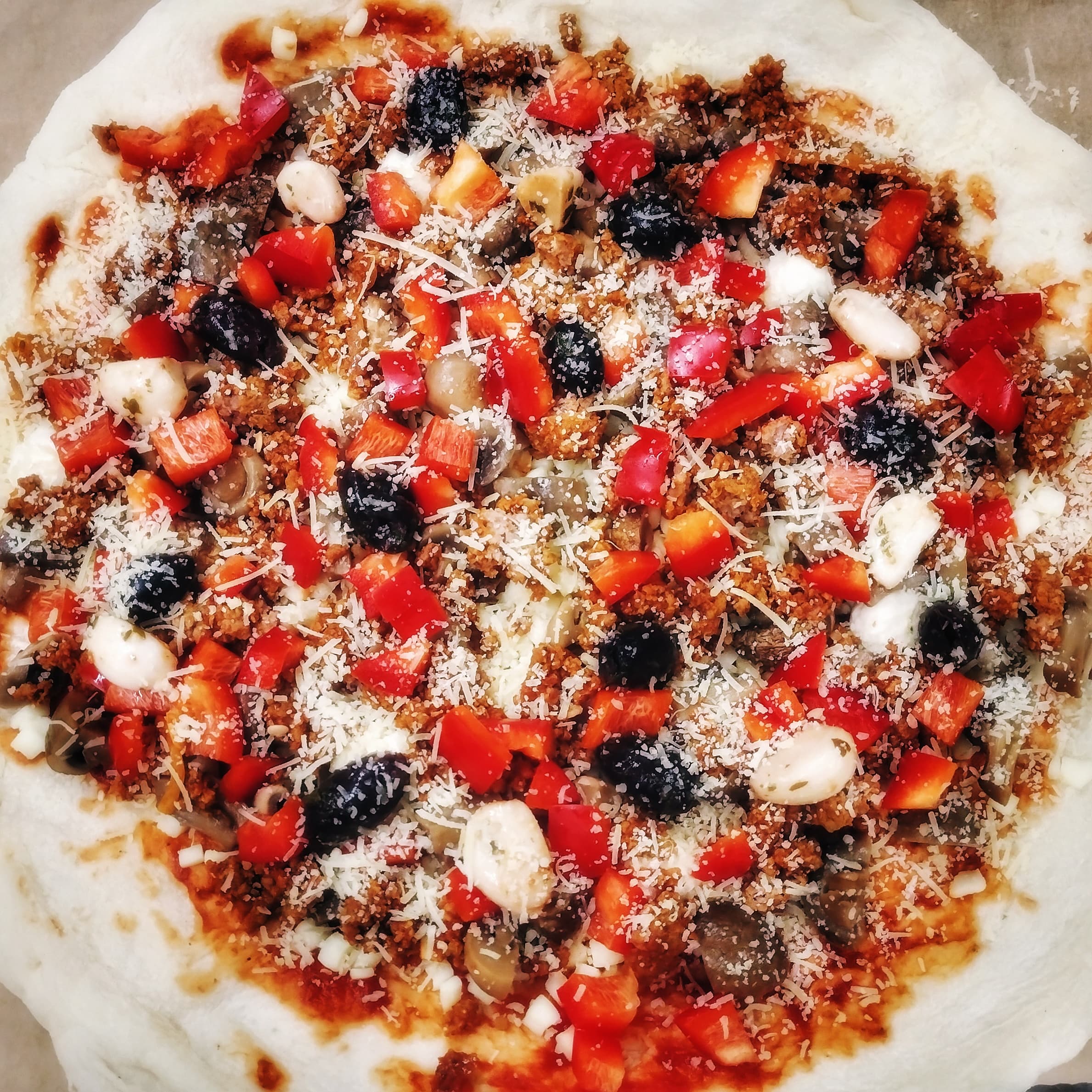 a friend of mine made the ground beef - absolutely delicious and took the pizza to another level, so can’t really cost that, but… the rest of the pizza, maybe £5 total tops.