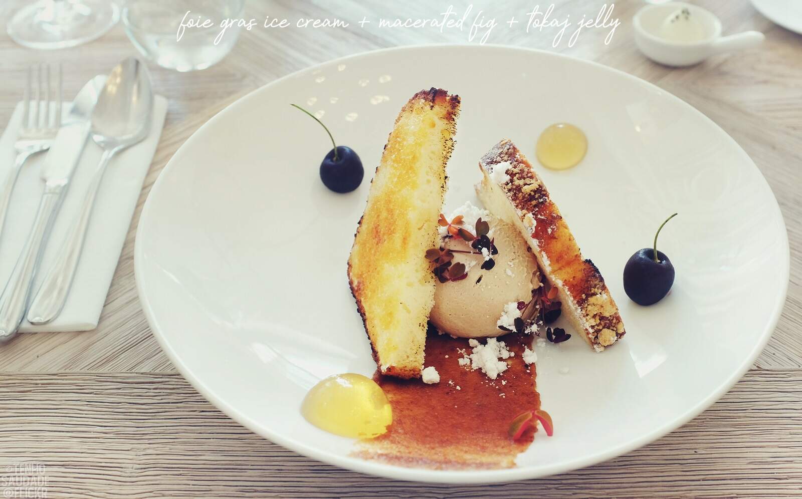 For dessert I had a scoop of foie gras ice cream, which had a pleasant foie flavor and was topped with some flaky sea salt and lavender petals.