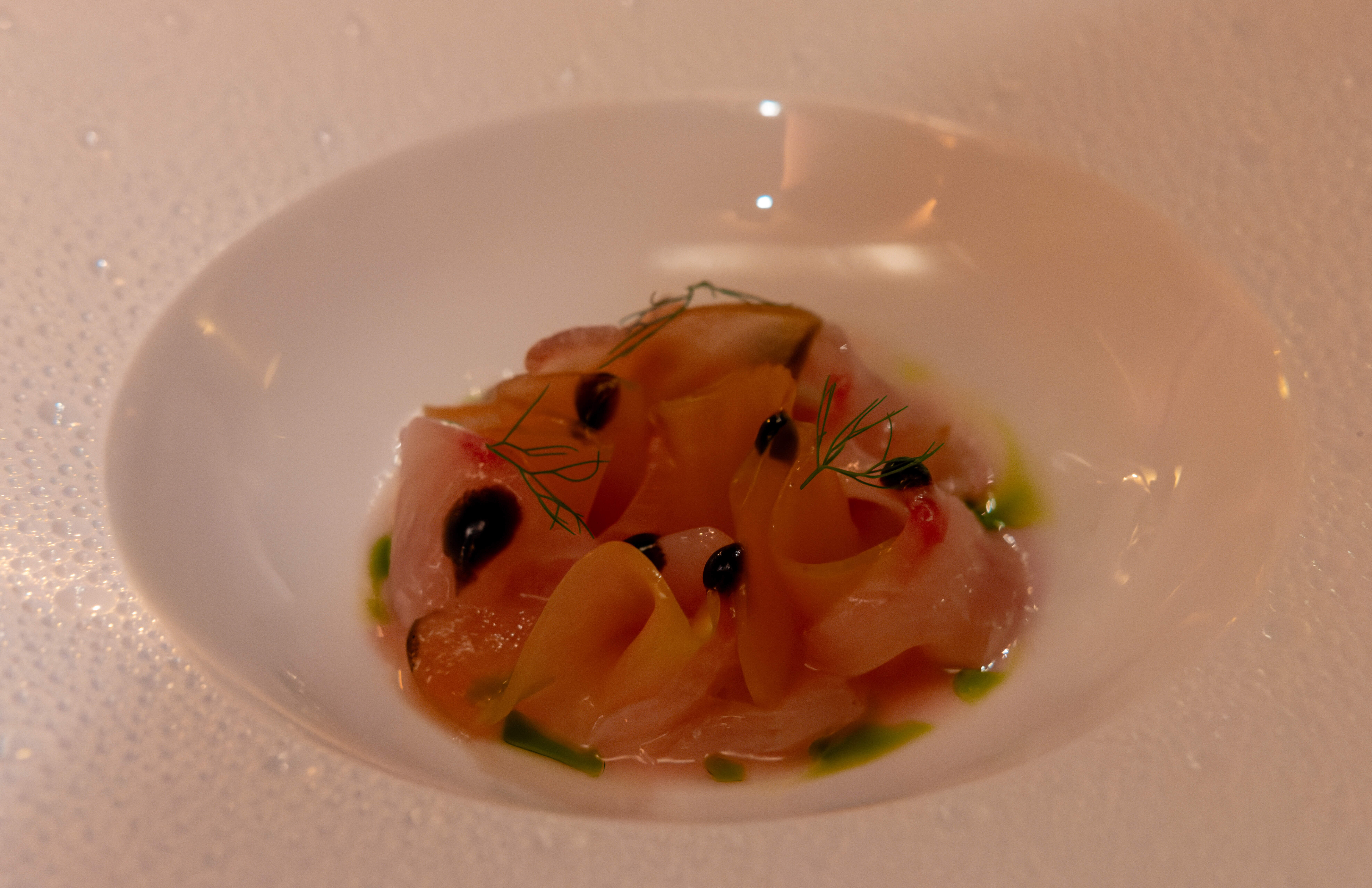 Hiramasa crudo, Pink Lady apple, fennel, bergamot