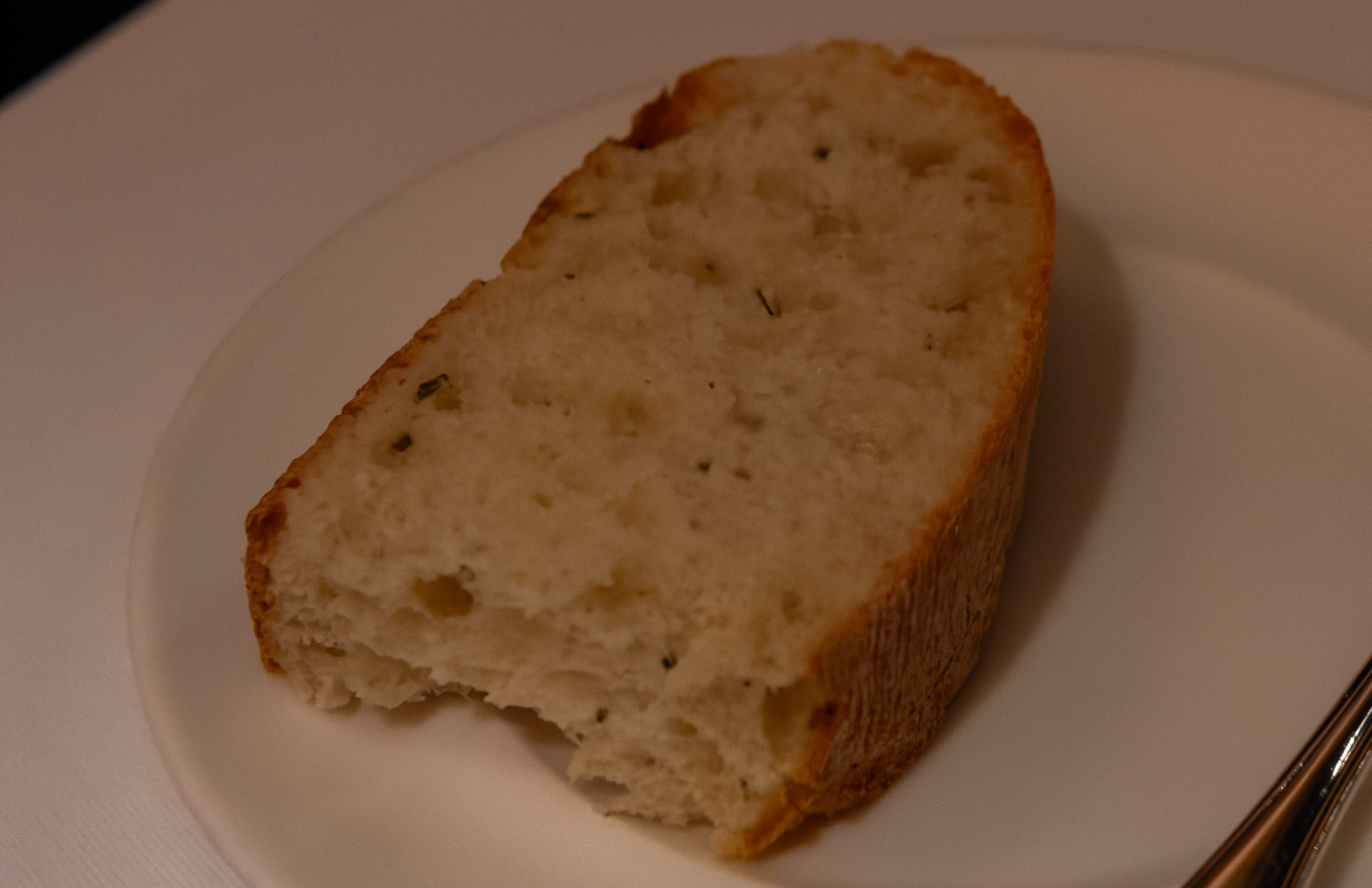 There was also bread and house cultured butter from Vermont along with flaky salt. The bread was replenished regularly as desired and was very good. That night there was a rosemary sourdough and an olive bread.
