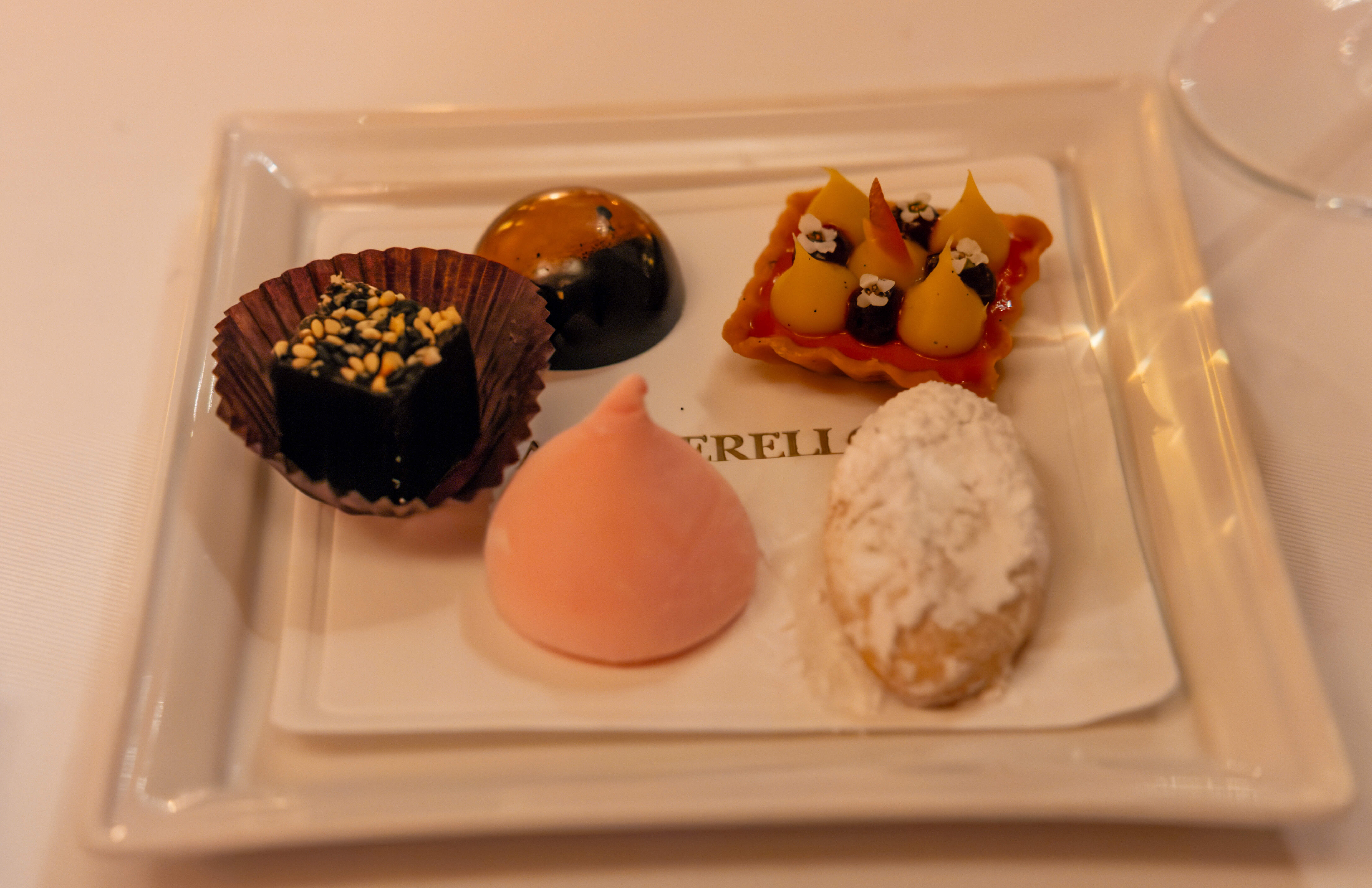 But wait, there’s more! A dessert cart came by with a selection of mignardises. I asked for one of everything