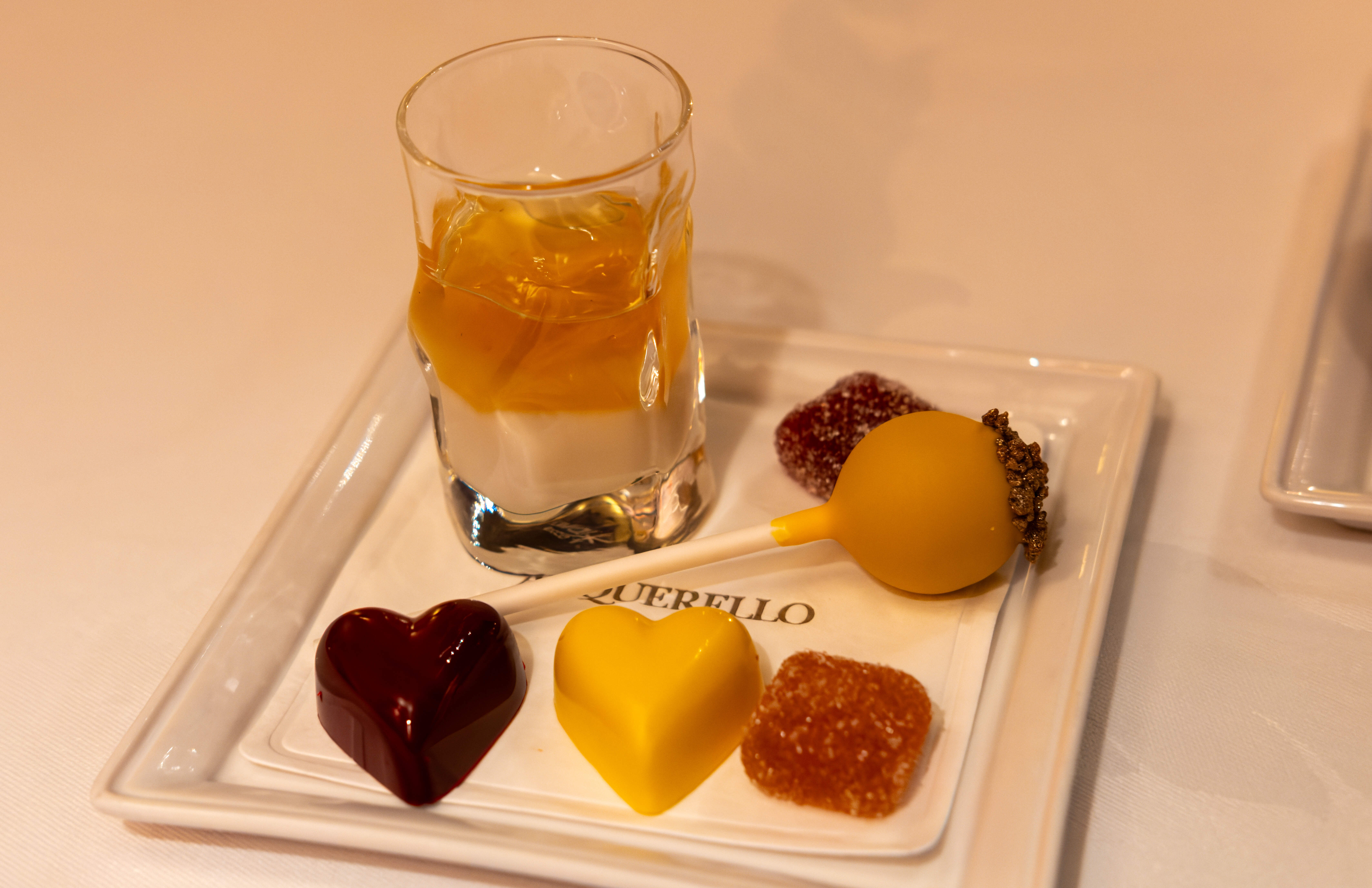 I didn’t take notes on this either but they were all nice. Among the little bites were chocolate truffles, pâtes de fruits, a custard like thing with some jelly on top, a pink marshmallow, and a lollipop.
