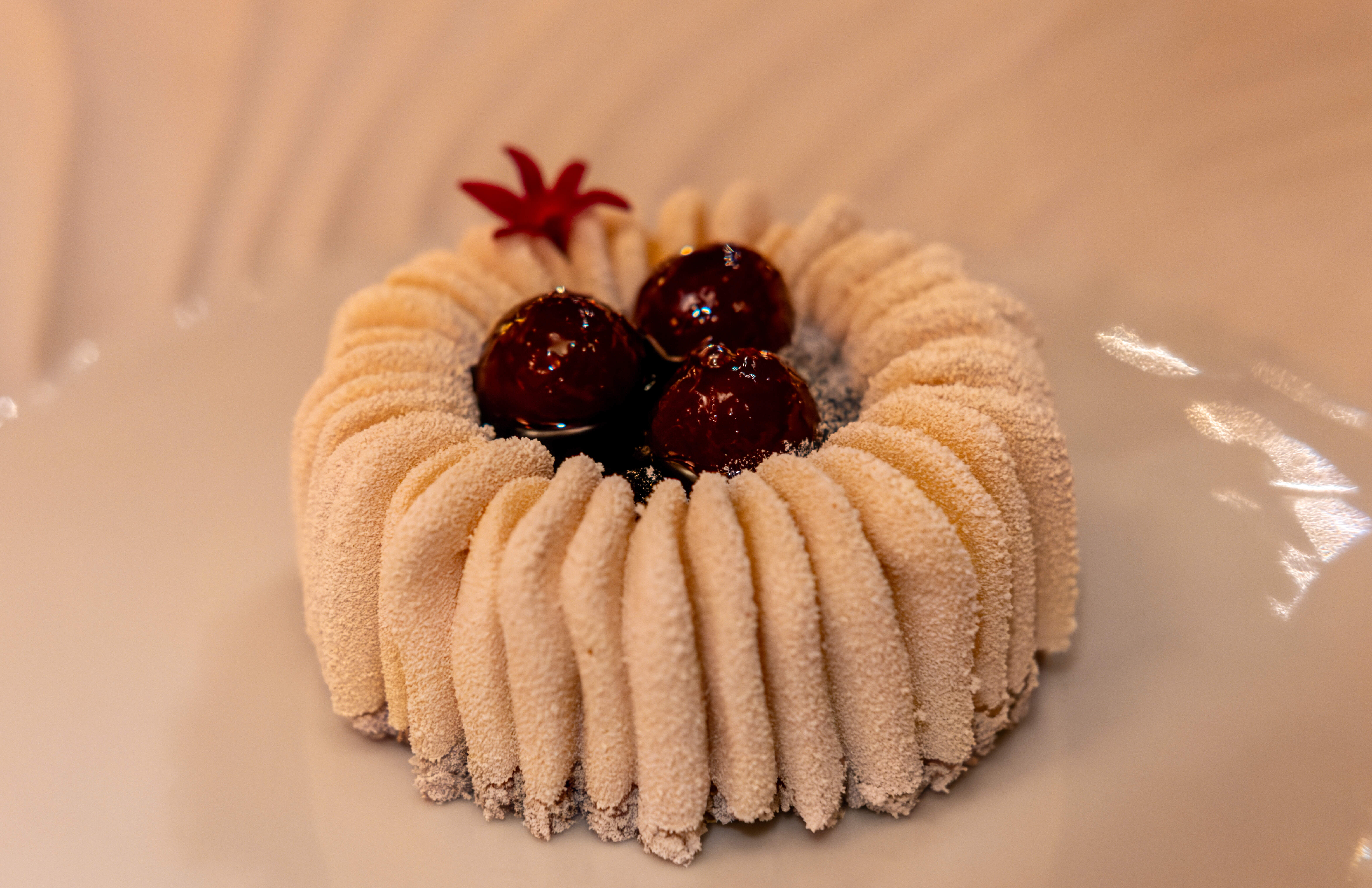 And then dessert, which was a multi layered creamy thing that I forgot to take notes on but I remember was quite nice. There were some very nice crisp cherries on top.