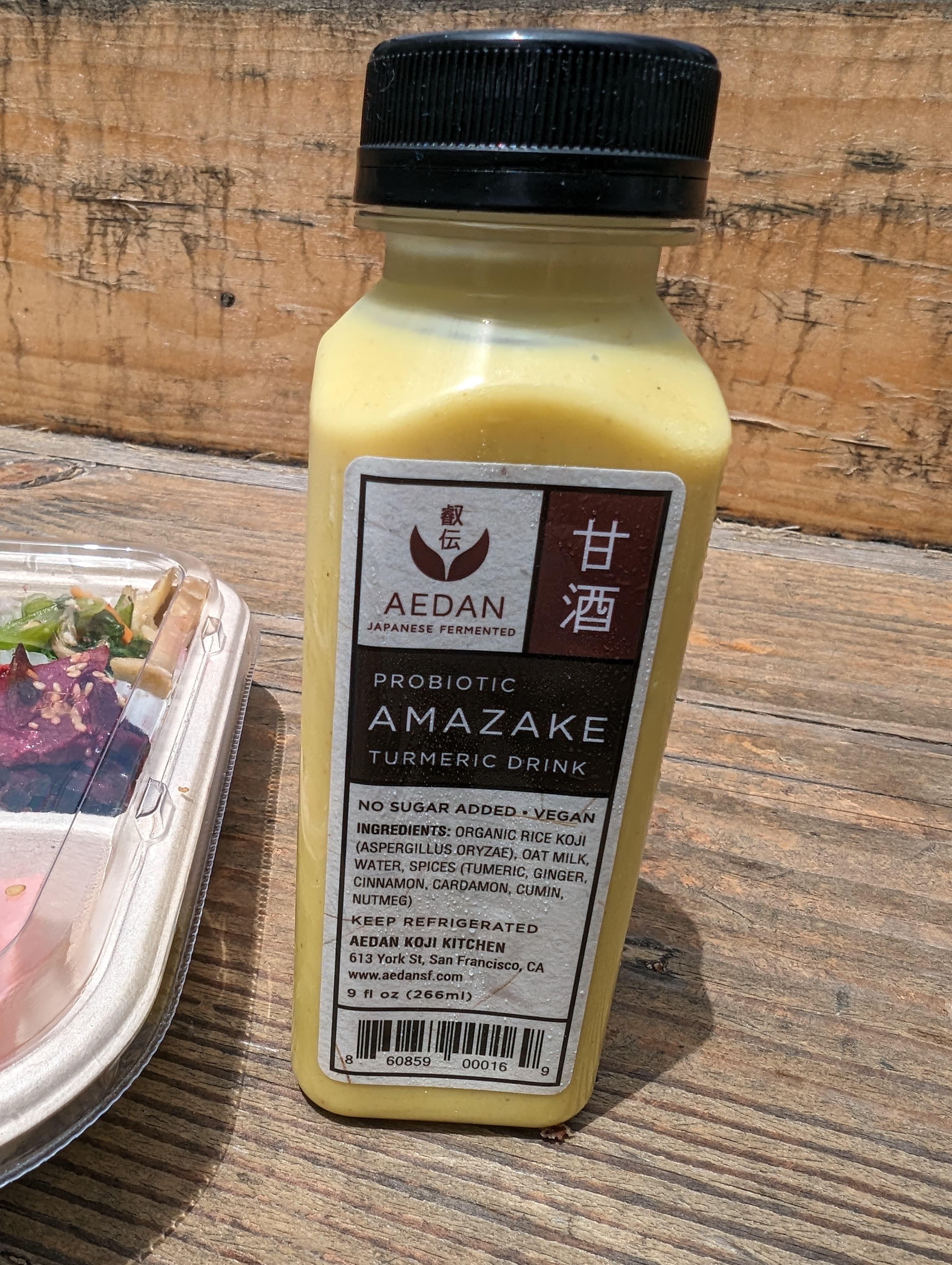 I’ve seen Aedan’s miso around in stores and I think they have a stand at the Ferry Building Farmer’s Market, but I had no idea the production facility was in the Mission, and apparently has been open for 2 years now. It’s tucked away on York near 18th, across from Bobo’s Bistro. Open for lunch on weekdays with bento boxes, which come with a small amount of soup or amazake based drinks. I liked the drink enough to grab a bottle for later. Bento has options of chicken/beef/salmon, plus a special that I didn’t ask about. No seating inside, but there’s a bench/planter box outside. I’d just finished lunch so I’ve only nibbled on the bento so far, but it definitely seems worthwhile. They also have all their koji products for sale.