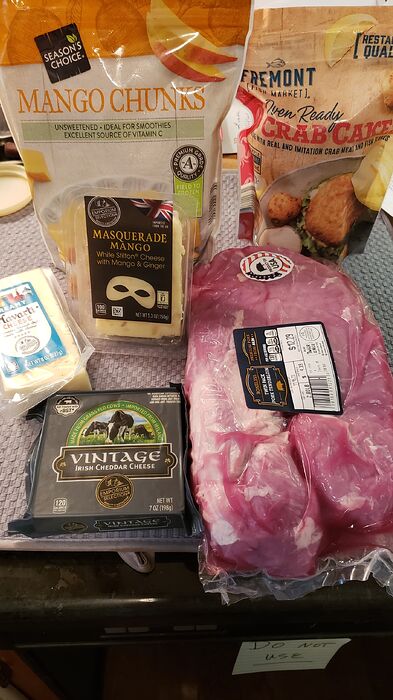Fremont label crab cakes recommended by @Rooster and frozen chunks of mango were popped into my freezer.