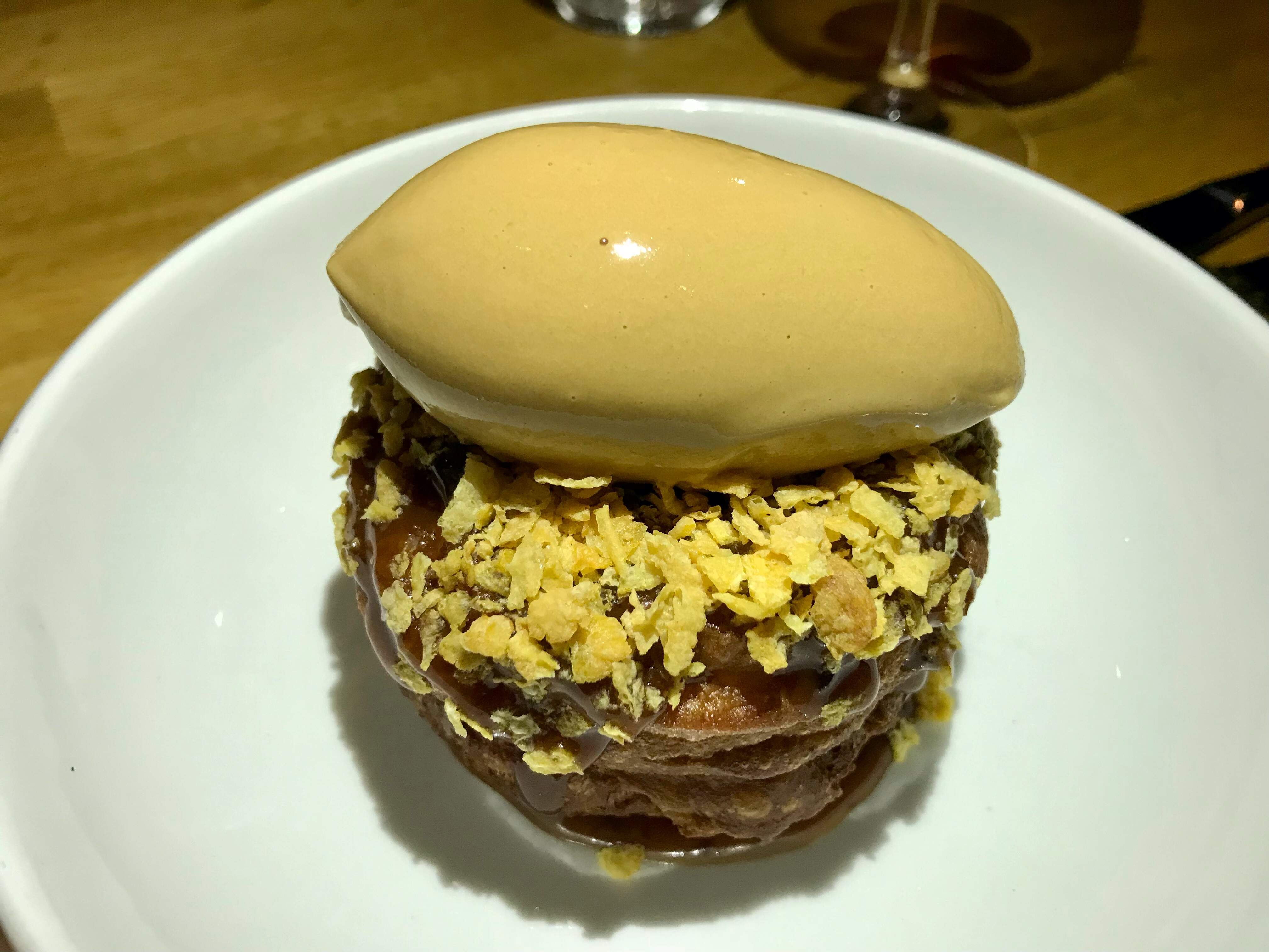 - An airy cruller, topped with just-sweet-enough miso caramel ice cream.