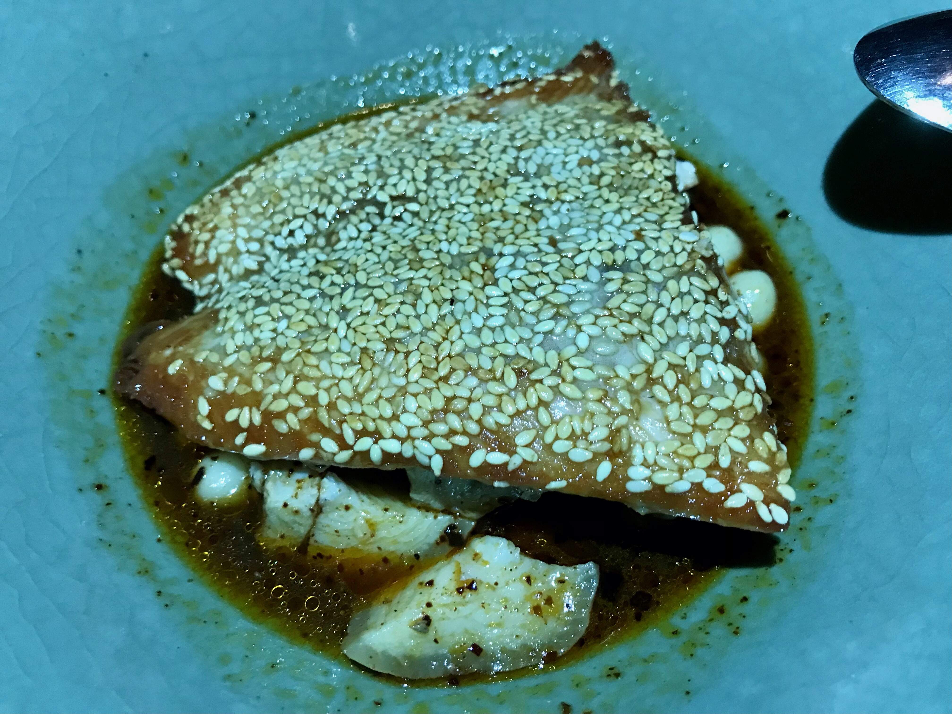 A highlight was the sesame crusted rainbow trout, which was perfectly cooked and came over coco beans and a vibrant sauce spiked with morita chilis.