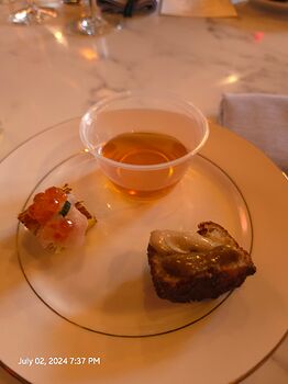 I liked the pave bite better overall, but I really enjoyed the liver sauce on the financier. I found the financier a tad too crispy