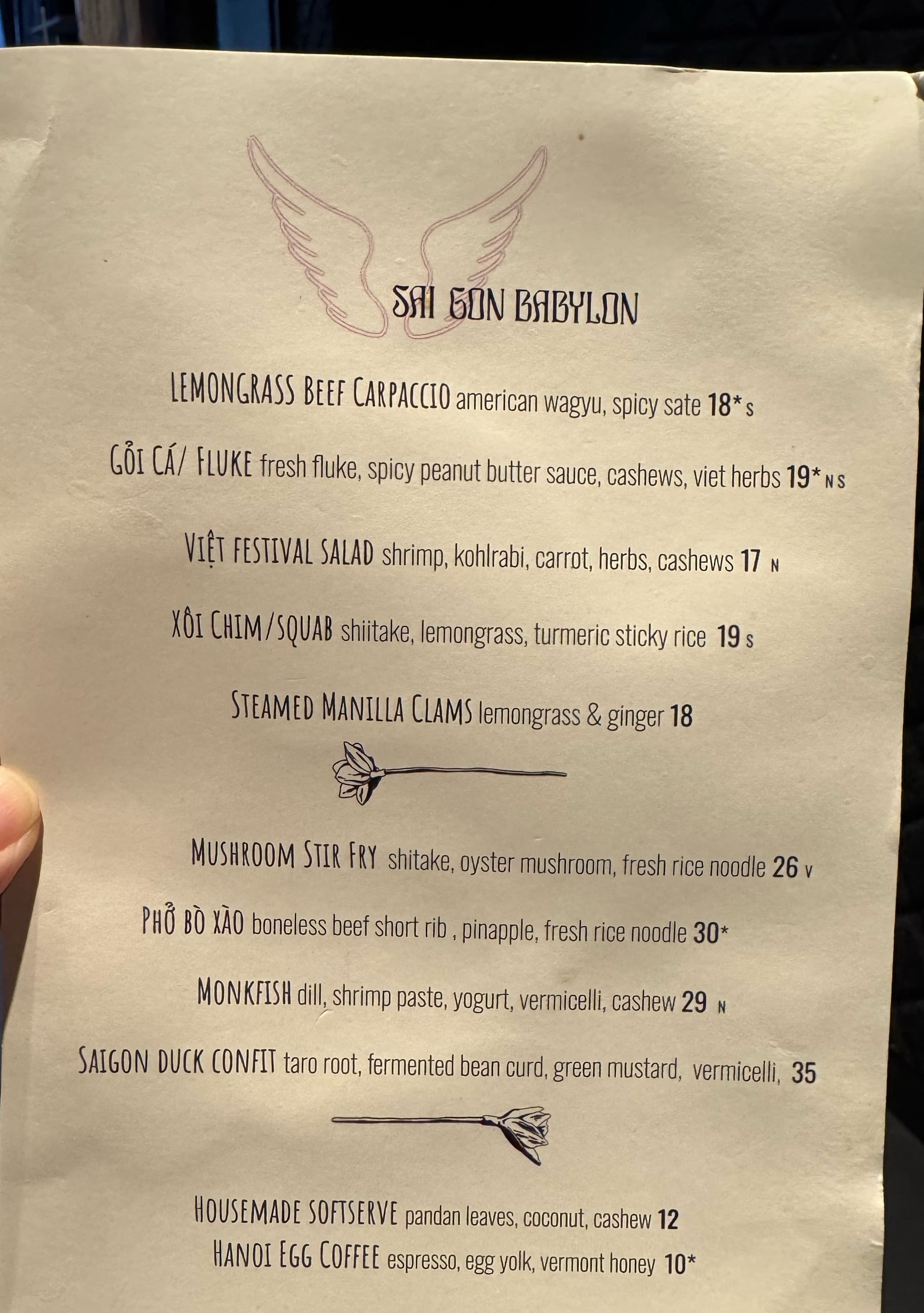 I’d be up for Babylon Saigon. Has anyone seen anything that looks like a menu?