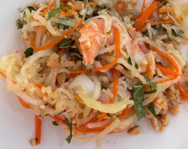 Here is some awful photographic evidence (shrimp salad is post-takedown; it was more composed when it came out):