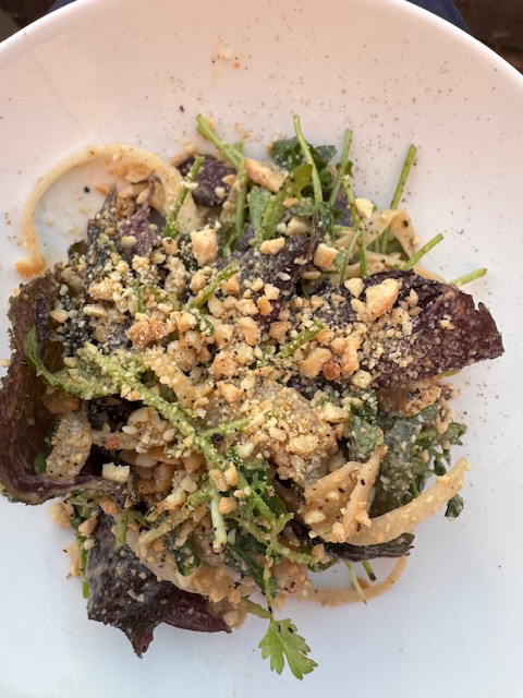 Food included lemongrass beef carpaccio (lovely to look at, not sure if it was lovely to eat), fluke salad (loved this one, although a tad salty; redolent of herbs, including one of my favorites, perilla/shiso leaf), steamed Manila clams with lemongrass (fine but blander than expected), squab prepared laab-style (I saw some leftover, so maybe not awesome?), and the Viet festival salad with kohlrabi (I didn’t taste, but it looked similar to a Thai-style green papaya salad).