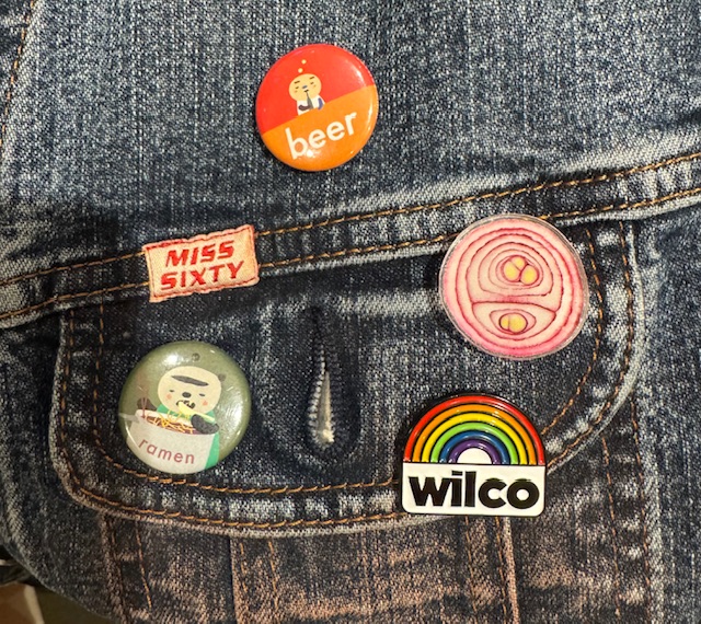 By the time we parted, we were all on hugging basis (I may have hugged @tomatotomato from the get-go?!). And wonderful @MaxEntropy came through with his welcome gift of Onion pins. I think mine looks quite fetching on my jean jacket, mais non?