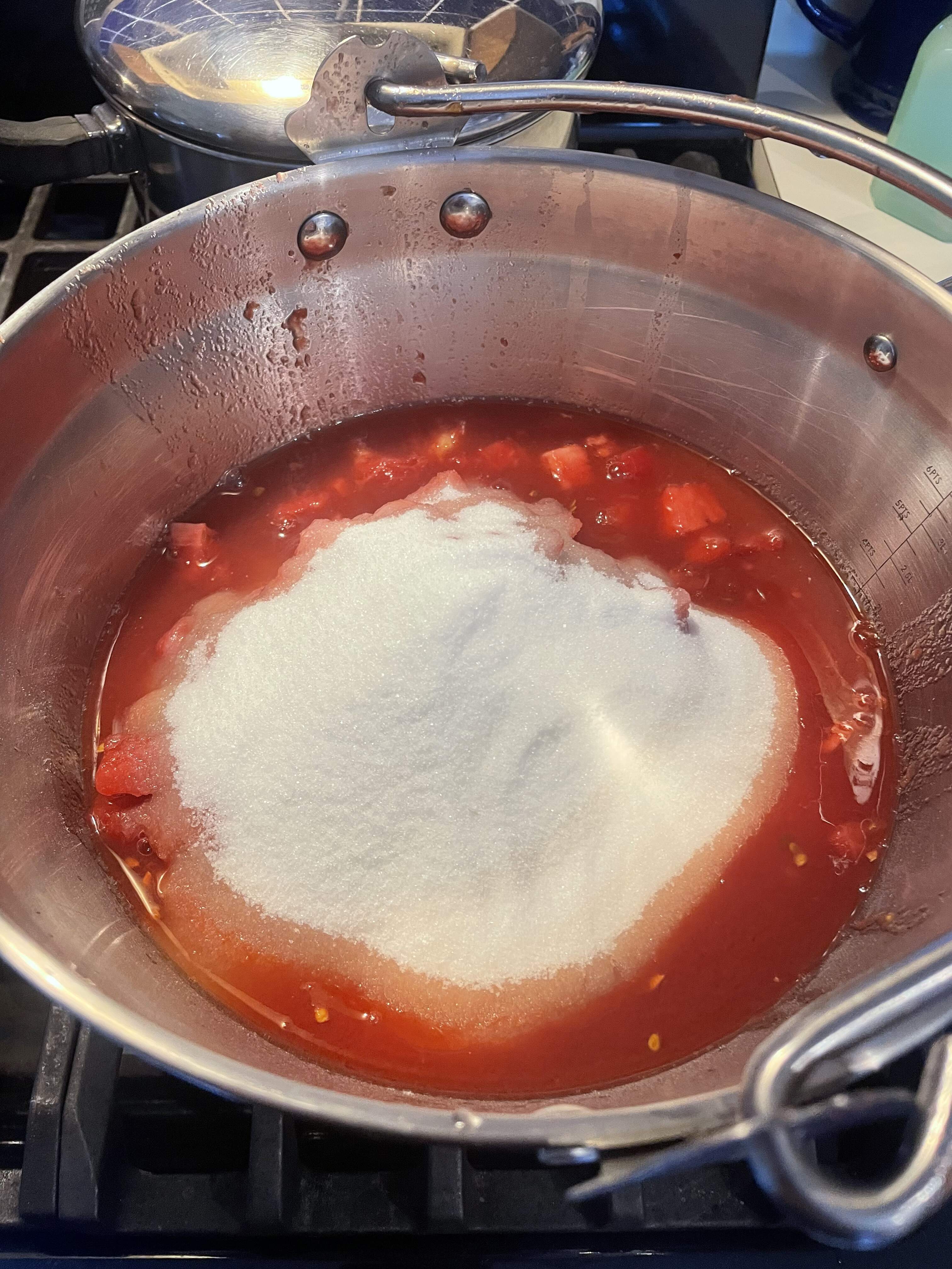We’ve been getting overloaded with tomatoes this year, even more than usual. Normally, I cut them into chunks and freeze them for later use (usually tomato beef chow mein), but we ran out of both freezer space and freezer-safe containers, so I decided to pressure can them. Once I started, I wondered if I had made a critical mistake by not draining the tomatoes of their juices, because they seemed way too watery as I was cooking them. If they were plum toms, I wouldn’t have given it a second thought, but they were a mishmash of several different kinds of cherries, slicers, and a volunteer. I was already committed, however, so I soldiered on, eventually putting up about a dozen pints. The finished product also looked kind of watery, so I was really unsure.