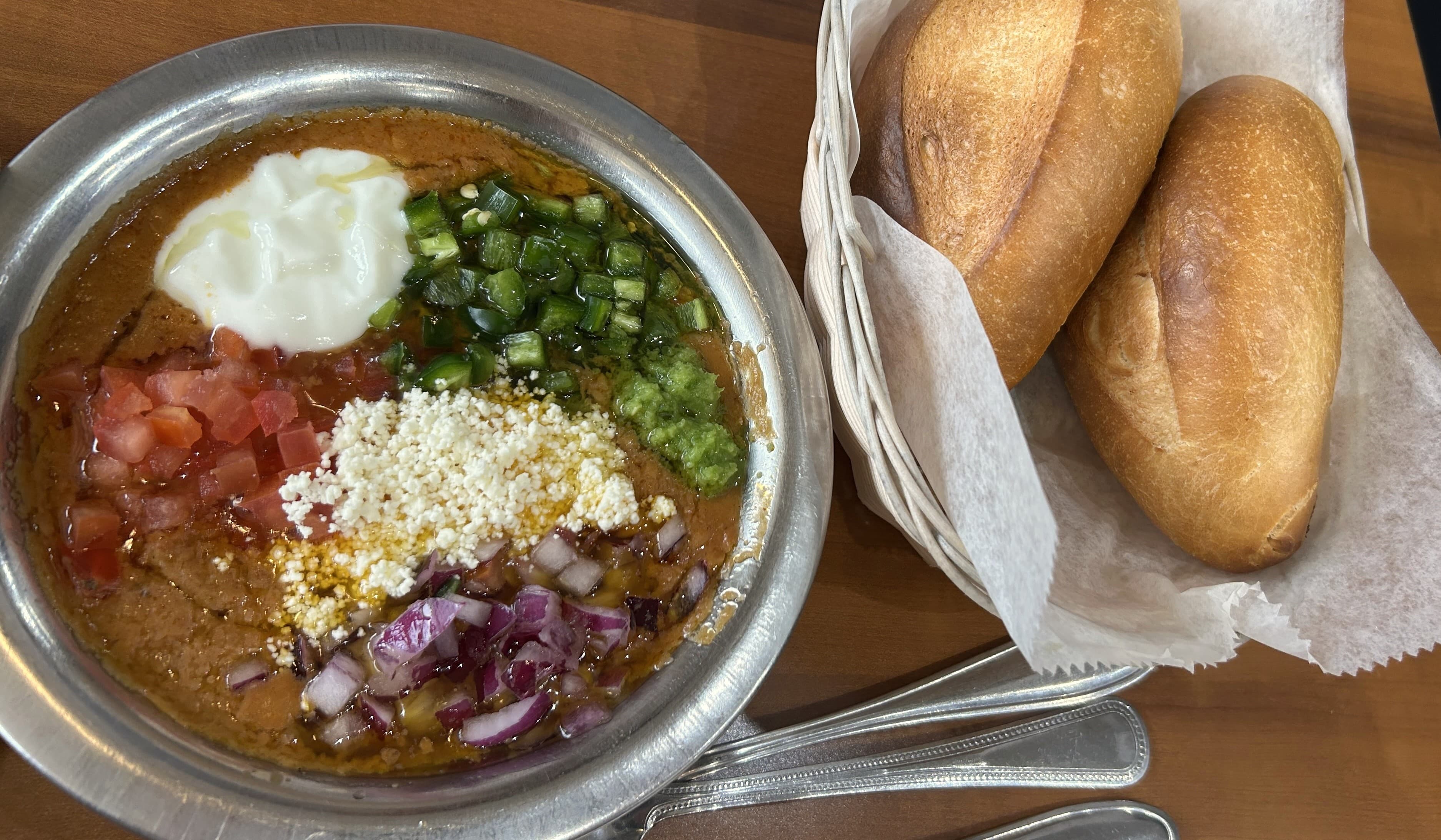 Fata, this is yet more French bread, this time soaked in a red sauce that was not spicy, served room temperature. This got better as we ate it.