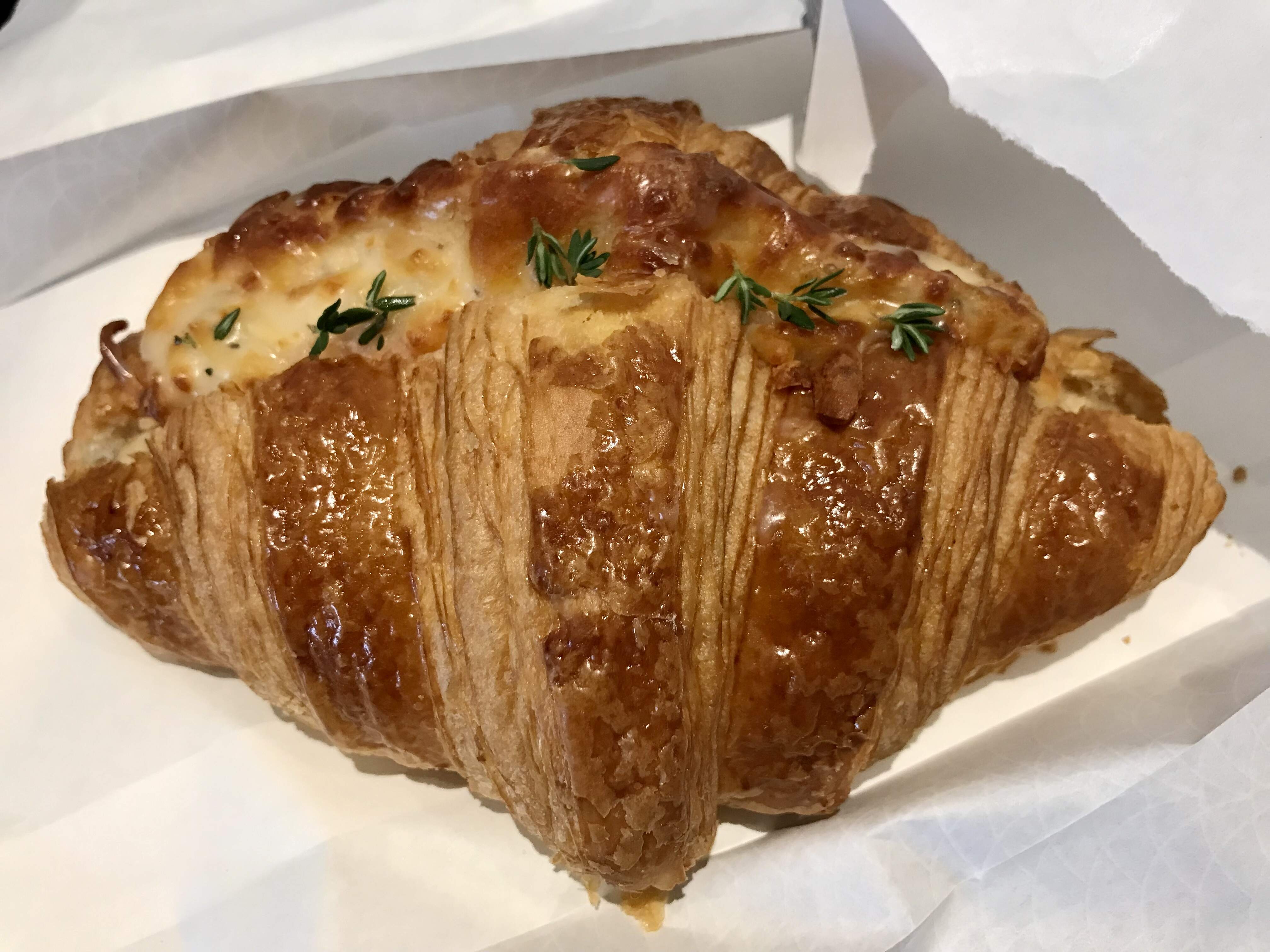 The most curious concoction was a turkey bechamel croissant. The dough was buttery, flakey, and light, although maybe not quite as snappy and shattery on the outside as Tasso. It was filled with sliced deli-style turkey, an anonymous cheese, bechamel, and fresh thyme.