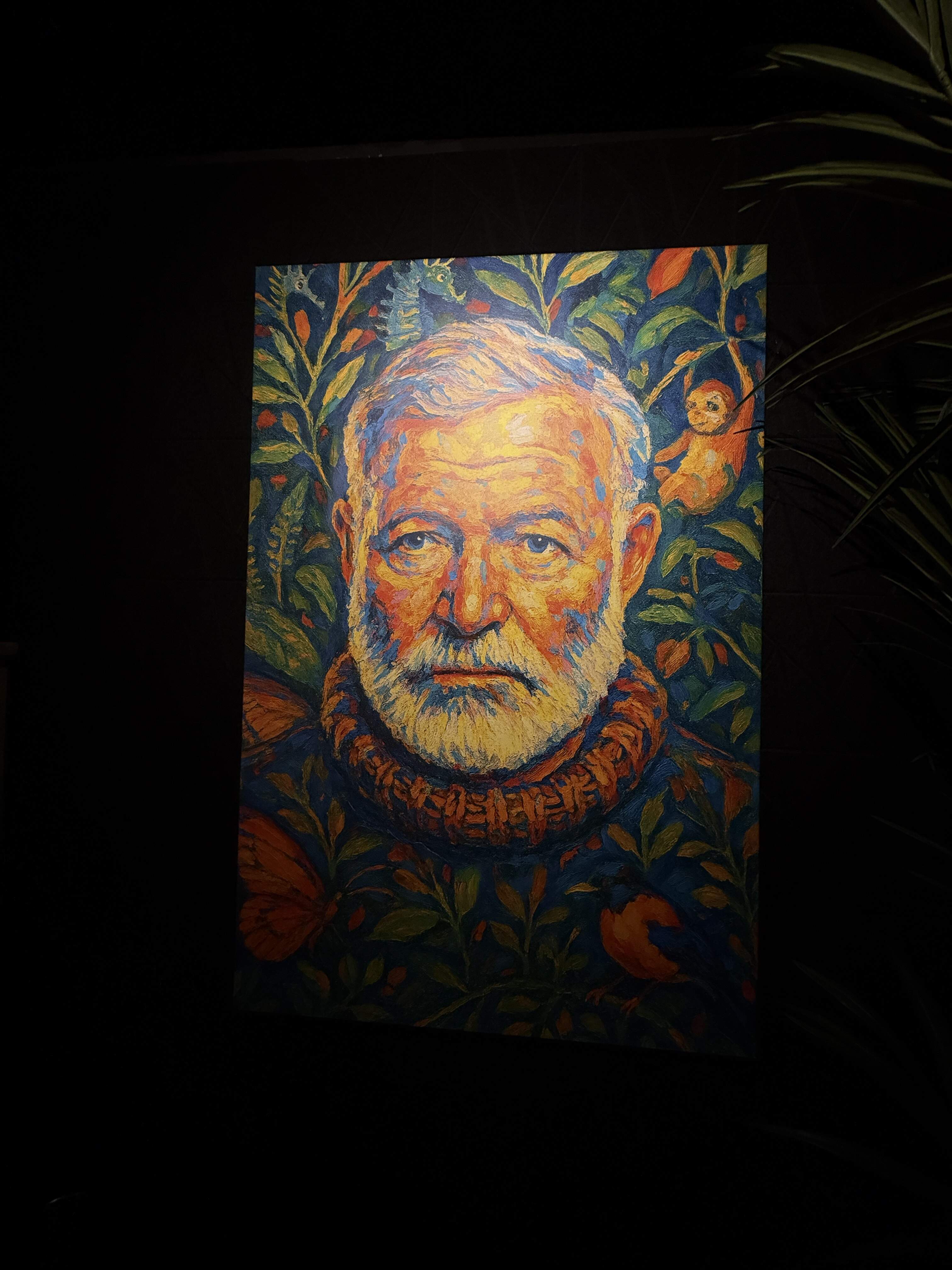 Barbudo consists of an upstairs Bar-Budo with an interesting wines + champagnes-by-the-glass and tapas menu (bikini de rabo de toro con queso comté y rúcula, brioche de steak tartar de picaña madurada, Brittany oysters), and downstairs, after passing a painted greeting of Papa Hemingway, one finds an elegant, serene dining room, with well dressed tables, comfortable seating, soft lighting and background music.