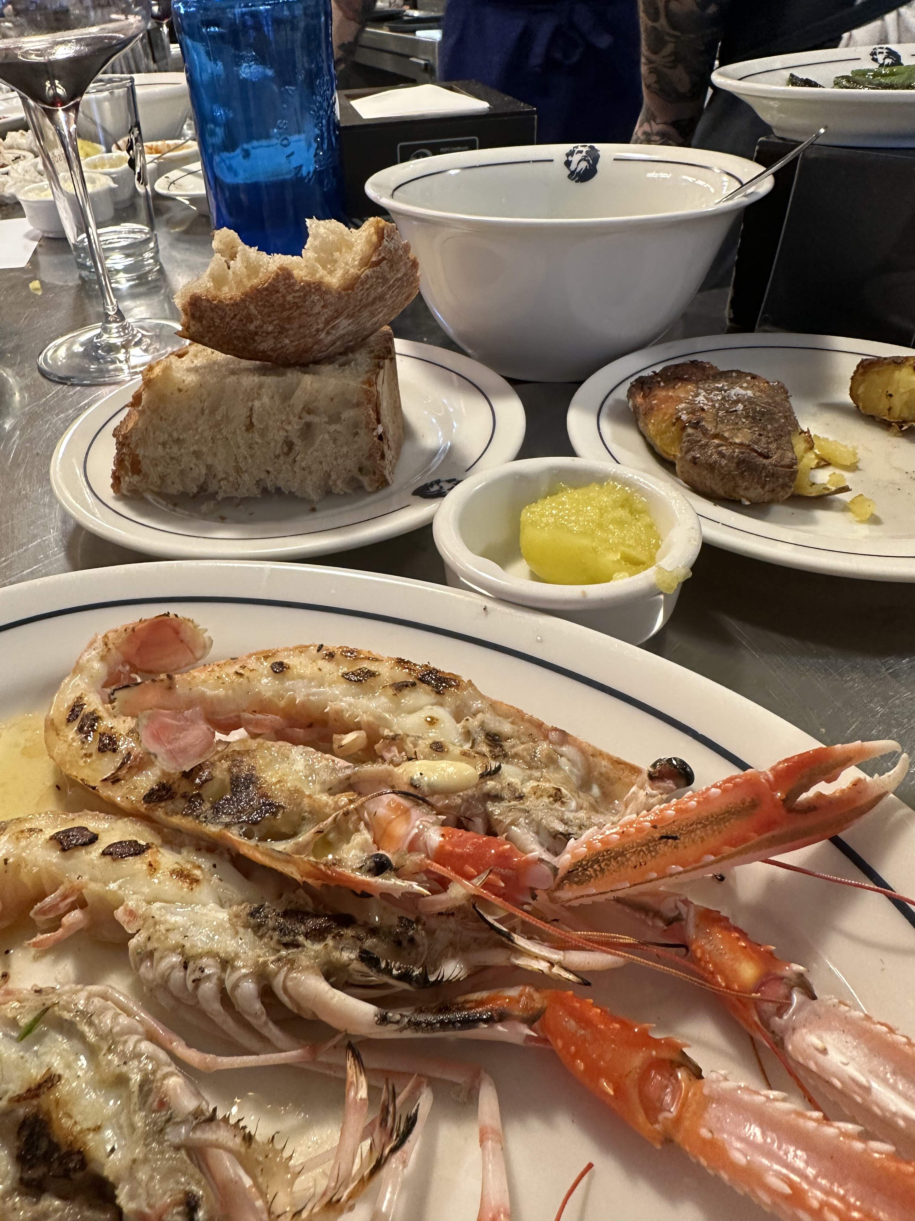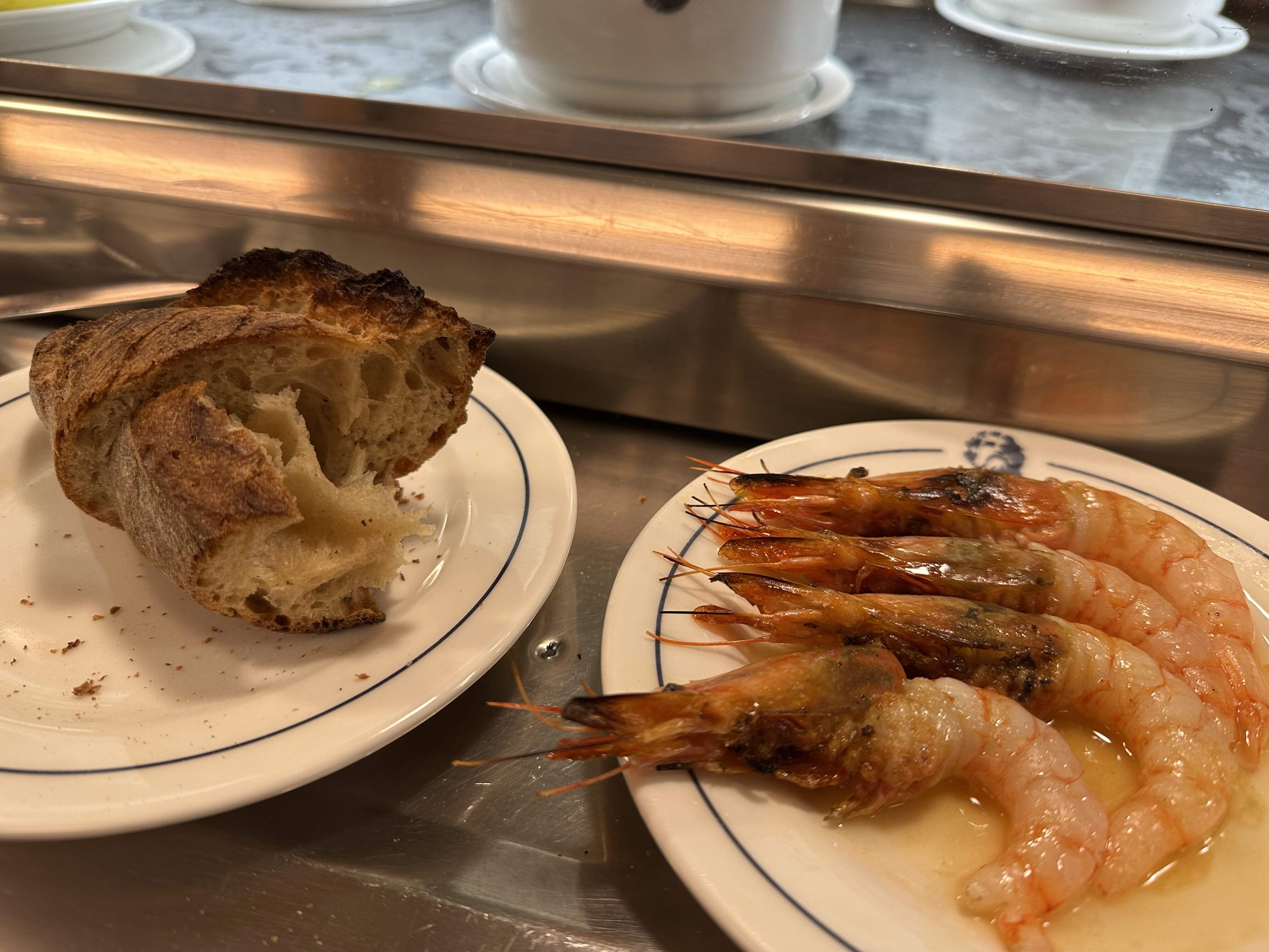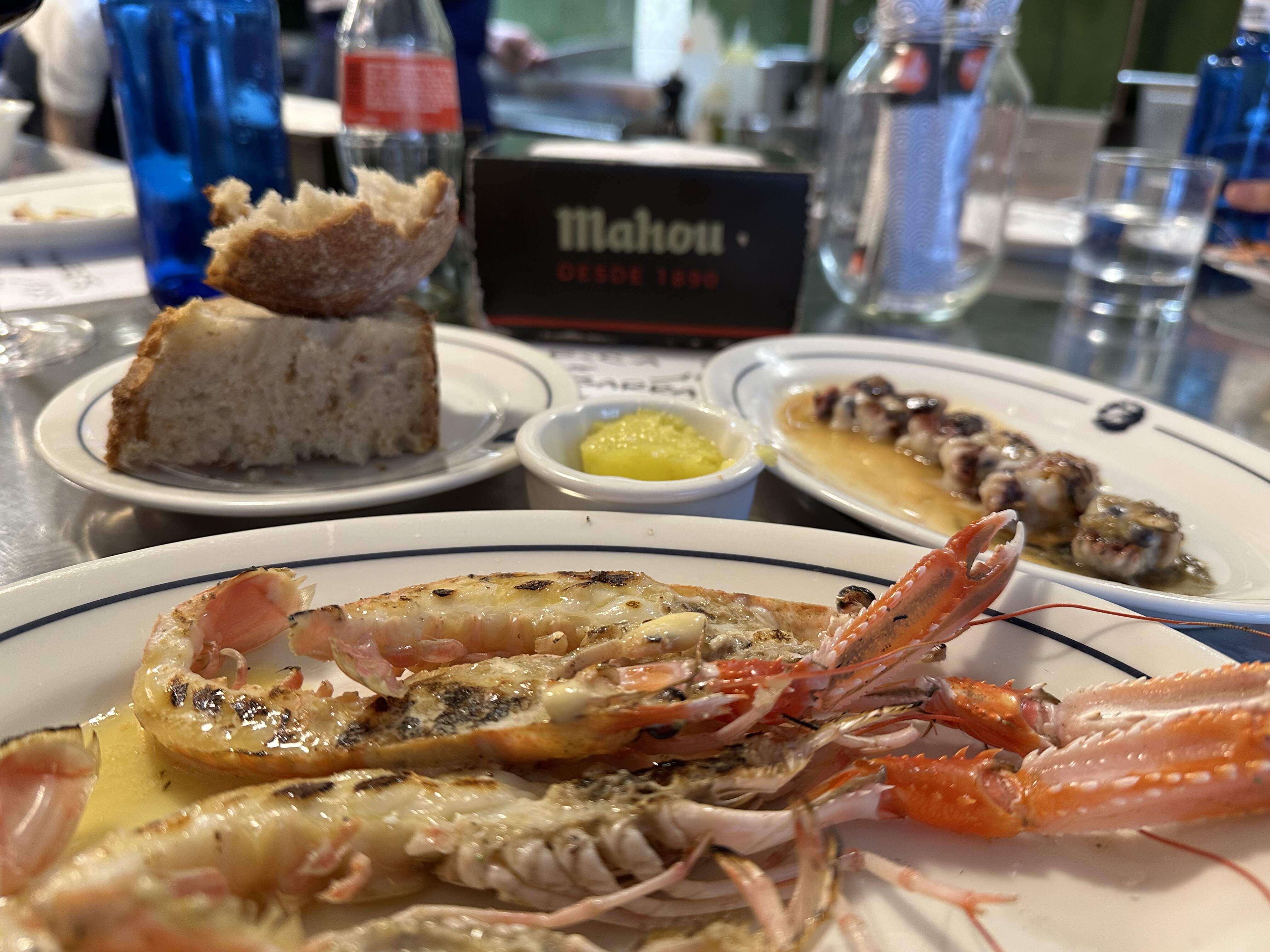 “Prawns from Palamos”–akin to saying "uni from Sant Barbara..or mussels from Isla de Arousa in Galicia) were not to be had that Sunday night. And no cigalas; , my new object of adoration---- these go by various translations in English.