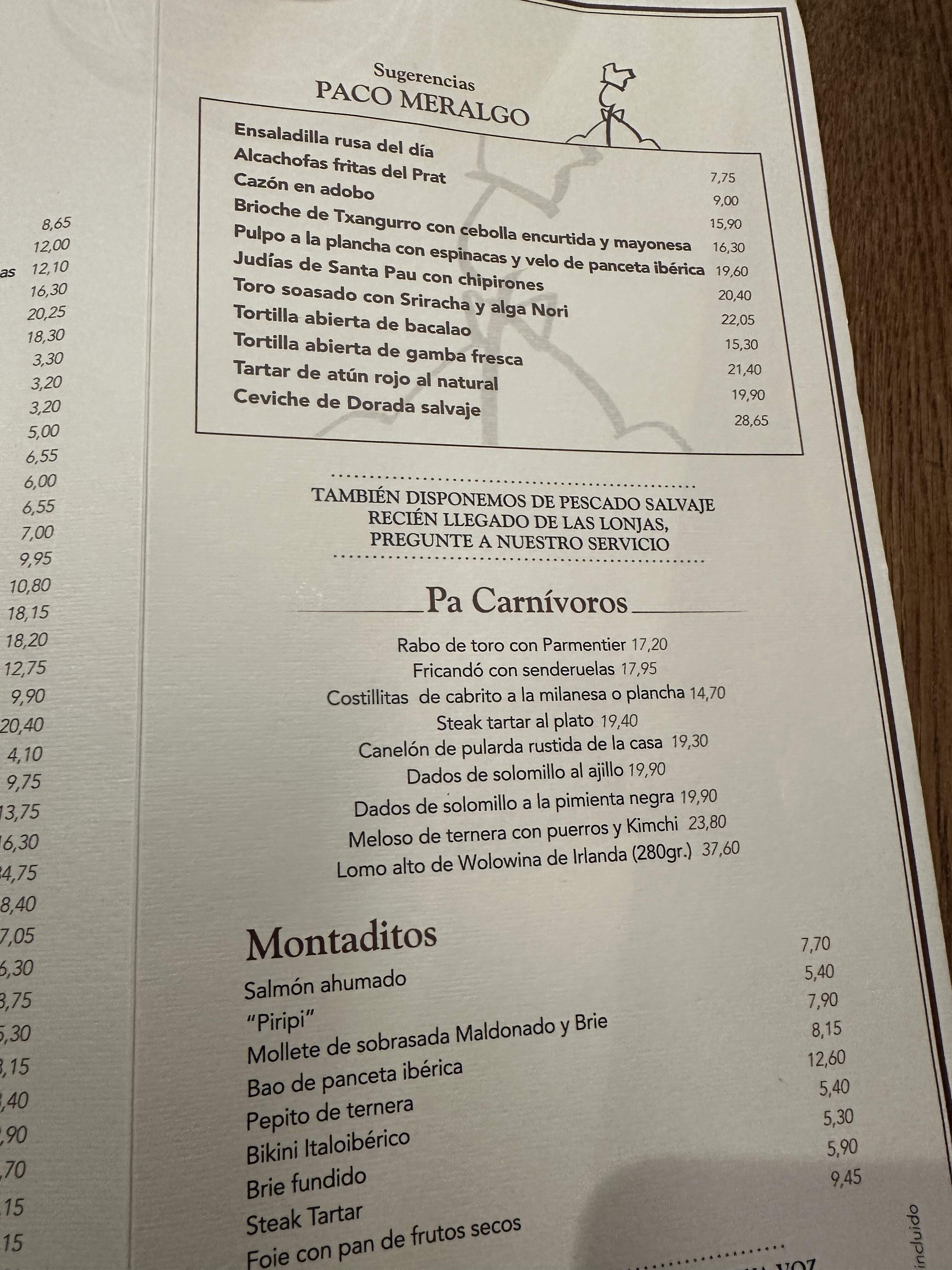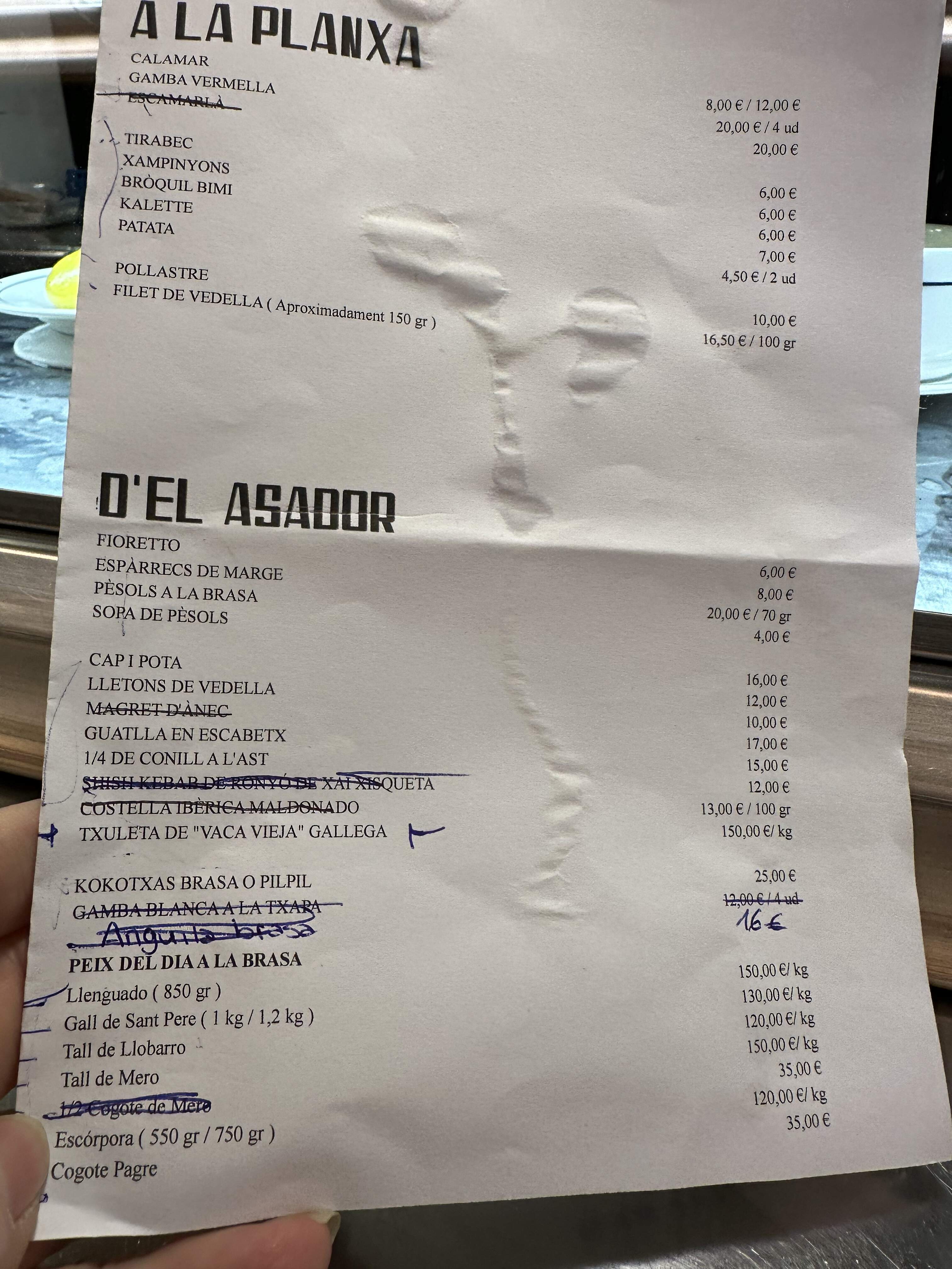 This was reiterated by the amiable waiter at PA COMER ALGO, who explained that most boats do not go out on Sunday and Monday mornings so the selection at the llonjas are minimal. Not surprisingly, the seafood selection last Sunday night was limited.