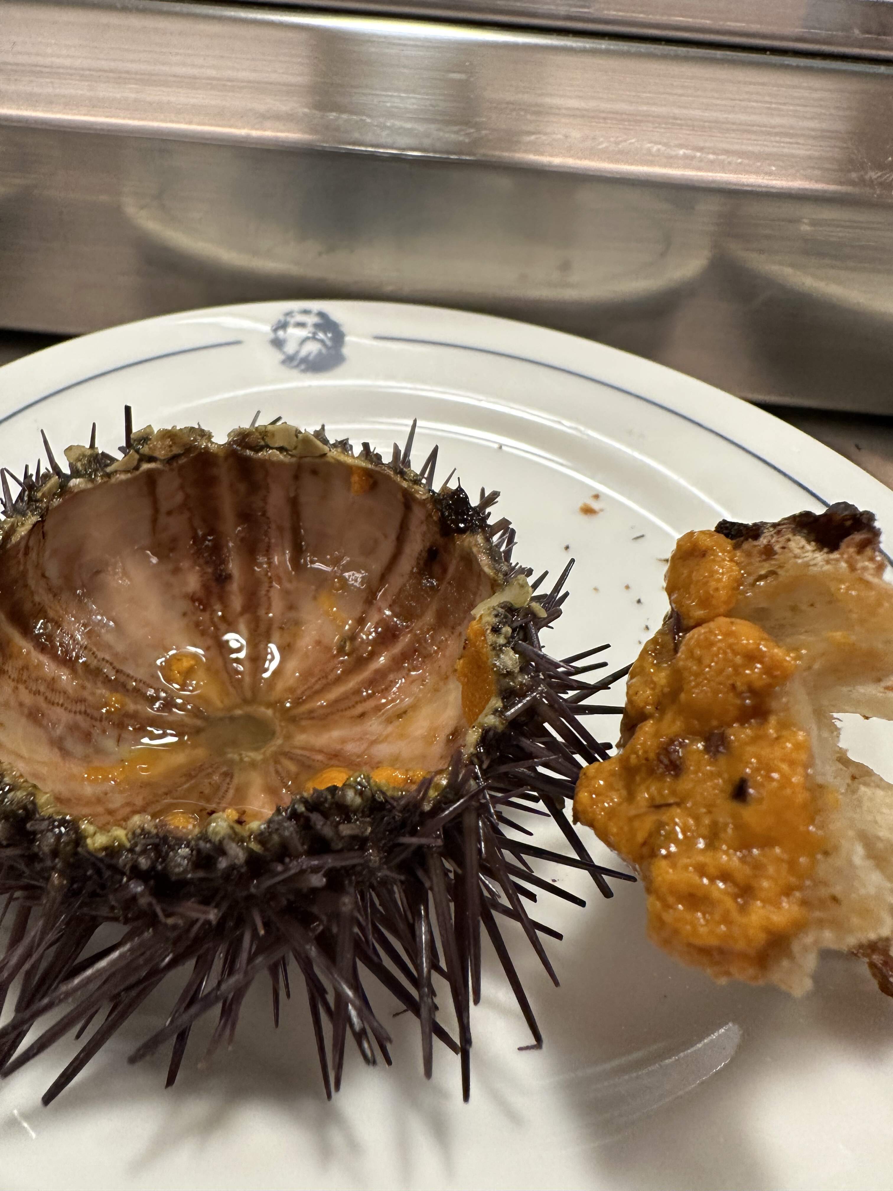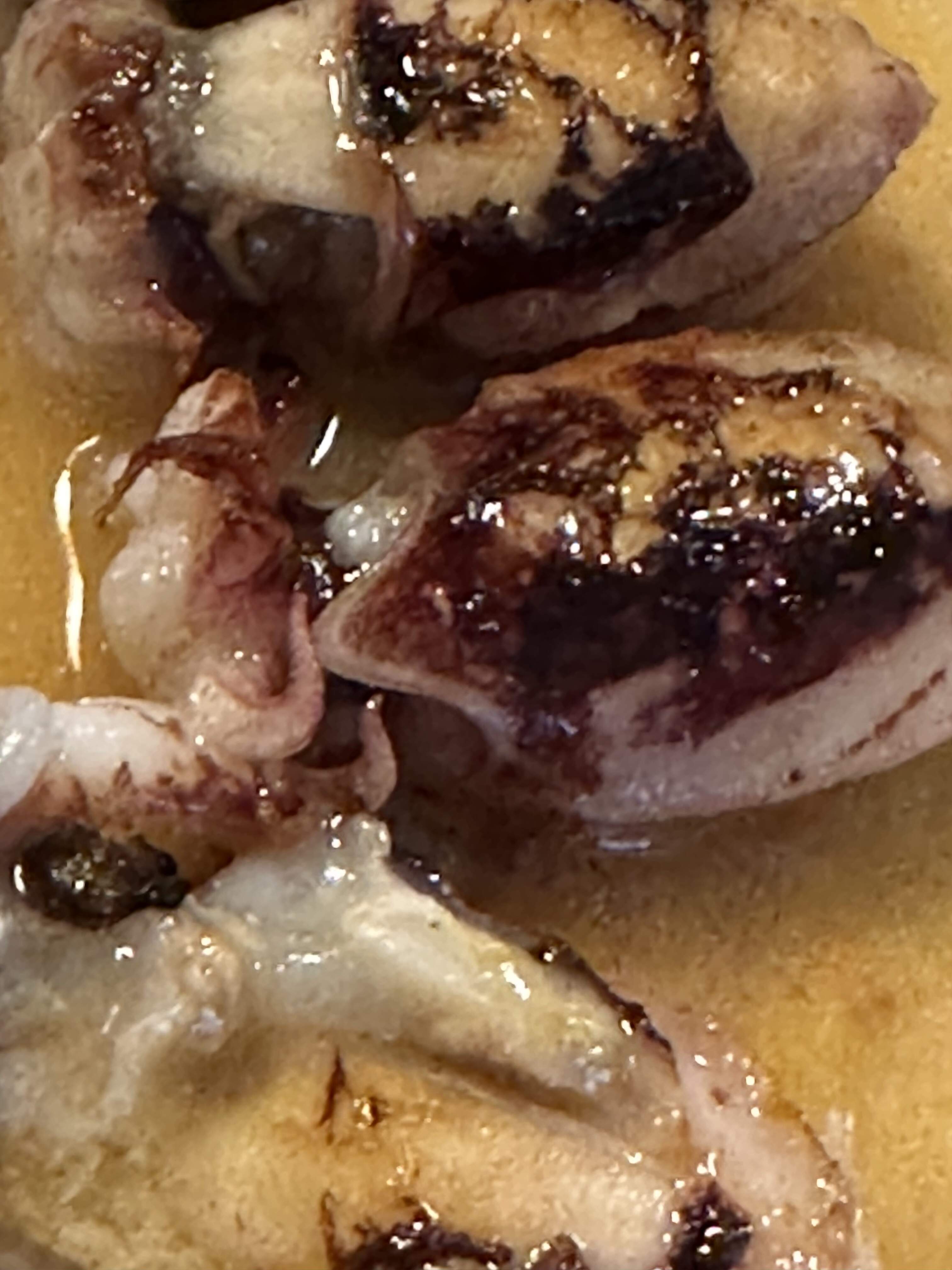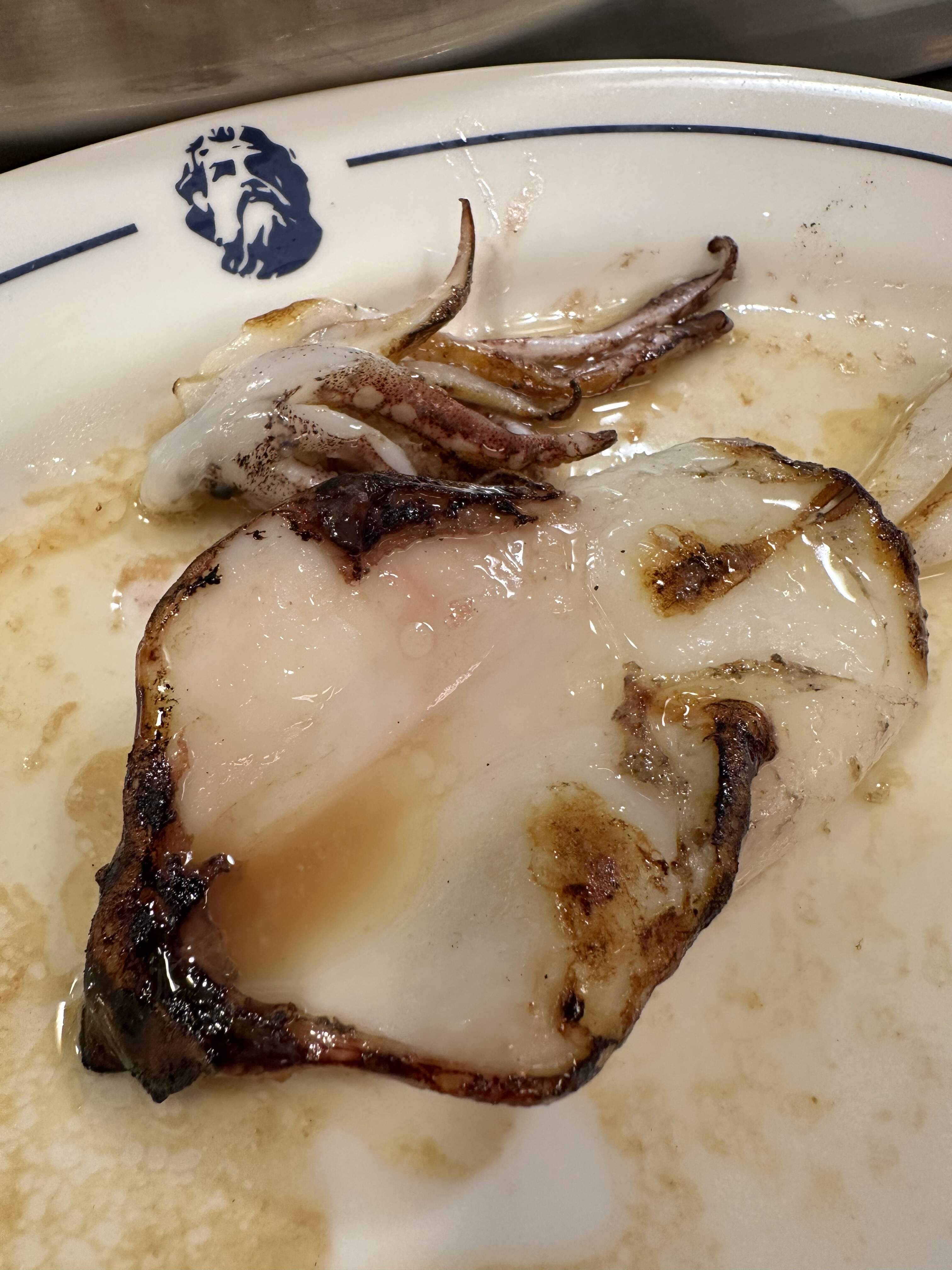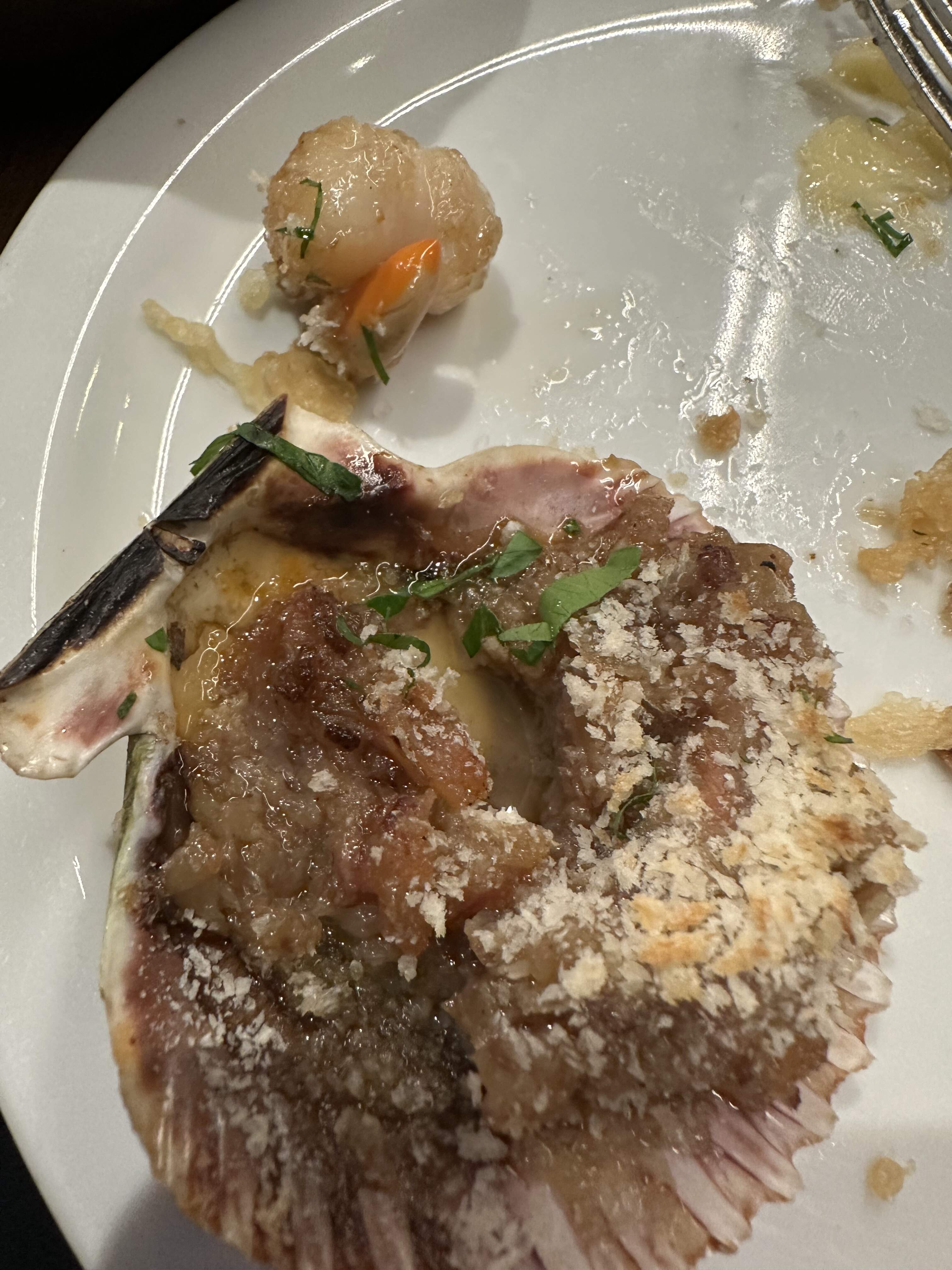 The large size of the shells belies the smallness of the scallop (Orange roe intact; visible in the last pic–why is this always absent when I buy scallops in the US) once cooked; the topping of caramelized onions and bread crumbs slightly overwhelmed the flavor of the meat, but I could have downed a dozen of these…highlight!!!