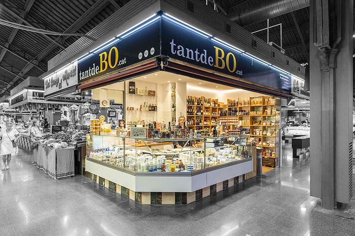 Also made a quick stop at the exquisite MERCAT DE LA CONCEPCIO, on c/Valencia. All the expected foods are for sale, along with lots of plants and flowers, and the place was devoid of any obvious tourists, unlike that other famous Barcelona food market. The glass and cast iron 1888 structure is gorgeous! I bought a Catalan young goat cheese at one of the stands near the front; have finished most of it already: