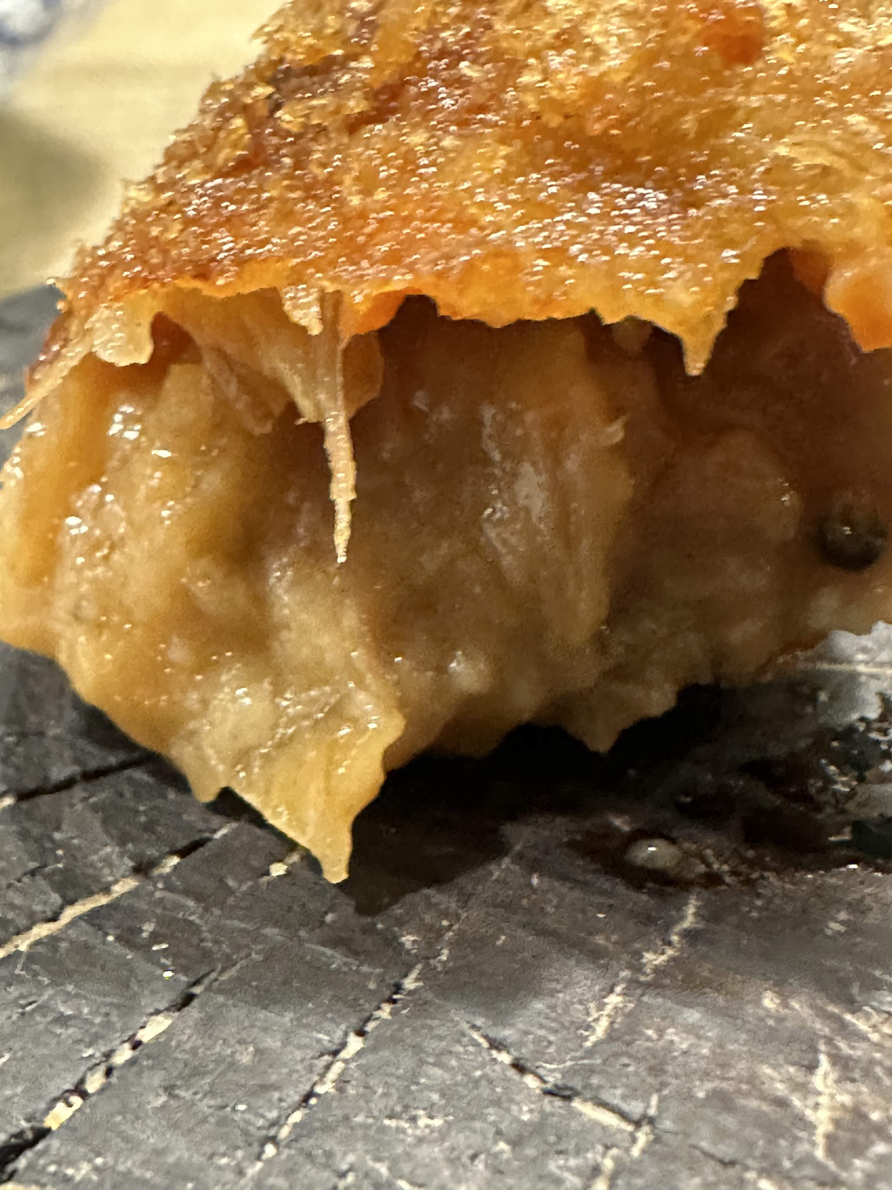 Close-up of duck croquette: