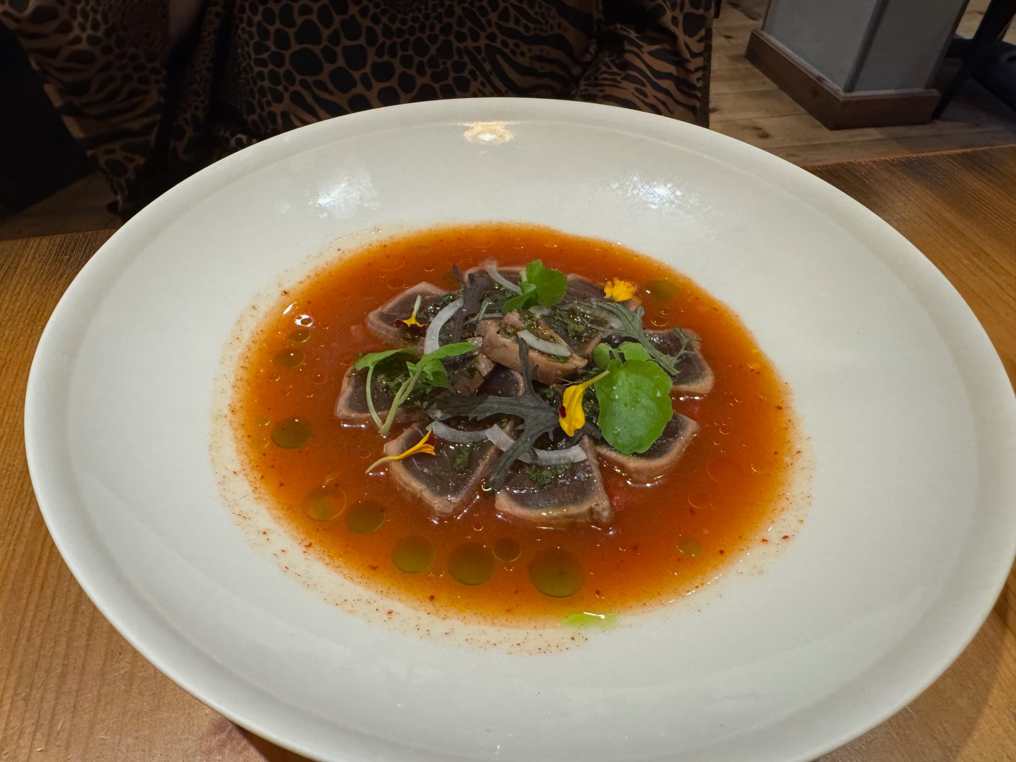 Another fantastic meal. Young crew of 3. A little serious, somewhat reserved. Small and intimate space so ressies def needed. Killer, silky smooth duck foie gras from Landes, a highly regarded area for foie gras. Delicate white tuna in a tomatoee salsa, delicious but salsa can overwhelm depending on how you eat it.