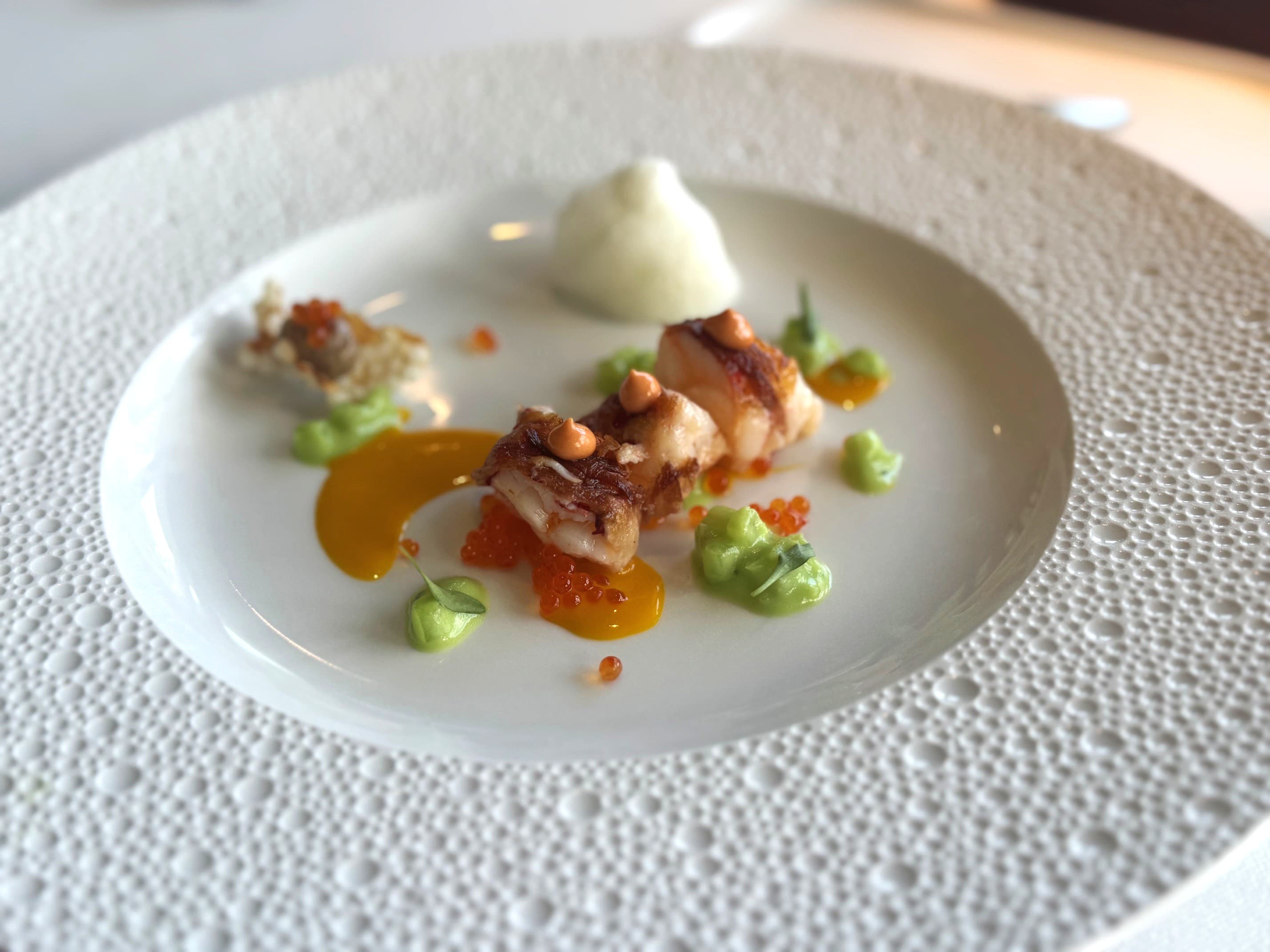 Tuna belly carpaccio, silky smooth, rich and very flavorful. Just could have used a little less oil. Seared foie gras, just like you expect. There was a monkfish and shrimp toast. Spider crab tart. All good. Fresh and tender razor clams. But perhaps my favorite dish of the night was the shrimp in garlic sauce. Small but potent. Didnt get a good pic. Torrija was the only ok dish. A far cry from the Torrijas of Andalucia.