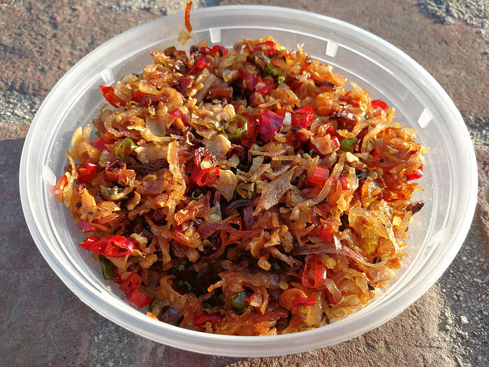 Sambal Goreng (Spicy Thai Chilies, Shallots, and Garlic, Fried and Finished with Coarse Salt):